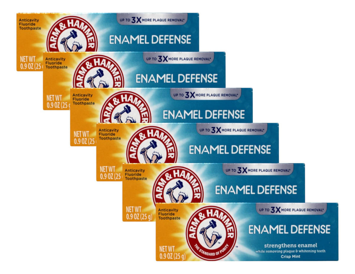 Pasta de dente branqueadora Arm & Hammer Truly Radiant Bright & Strong, 0,9 onça (pacote com 6) — A ÚNICA pasta de dente com proteção tripla de esmalte que fortalece o esmalte com flúor, neutraliza os ácidos erosivos do esmalte com bicarbonato de sódio e repara a superfície do esmalte com tecnologia de cálcio líquido — CLAREIA SUAVEMENTE os dentes e restaura o brilho e o brilho para um sorriso mais brilhante e confiante — LIMPA PROFUNDAMENTE entre os dentes e ao longo da linha da gengiva para dentes e gengivas saudáveis – Creme dental com flúor que ajuda a PROTEGER CONTRA CÁRIES e controlar o tártaro – Sabor crocante de menta que deixa um Sensação de limpeza ao sair do dentista
