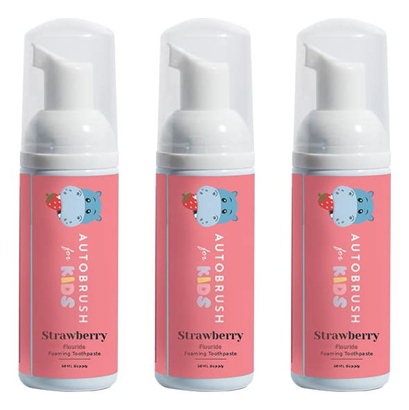 O creme dental autobrush Foam é elaborado com os melhores ingredientes para um cuidado bucal ideal. Experimente a alegria de escovar com nossa fórmula de espuma suave, projetada para cativar crianças e adultos. A poderosa textura de espuma atinge facilmente os pontos difíceis entre os dentes e ao longo da linha da gengiva. Nosso creme dental de espuma é resistente à placa bacteriana, mas suave ao esmalte, garantindo a limpeza dos dentes, língua, bochechas e gengivas com cada escova. Sua consistência leve e espumosa o torna ideal para pessoas com sensibilidades sensoriais, além de funcionar como enxaguante bucal, proporcionando uma experiência abrangente de higiene bucal. Escolha entre nossa variante sem flúor com Nano-HAP ou nossa opção de creme dental com espuma de flúor que atende a uma ampla gama de preferências. O creme dental Nano-HAP com escova automática não é apenas eficaz para adultos, mas também ideal para creme dental para treinamento ou creme dental para crianças pequenas, pois é seguro engolir em pequenas quantidades. Esse aspecto adicional de segurança torna a escovação uma experiência sem preocupações para pais e responsáveis. Combine nosso creme dental de espuma com qualquer modelo de escova automática para obter a melhor experiência de escovação que promove hábitos saudáveis de higiene bucal desde tenra idade. – CREME DENTAL PARA TREINAMENTO PARA CRIANÇAS: Oferecemos creme dental em espuma em variedades sem flúor e sem flúor para que você possa escolher a mais adequada para sua família. Nossa opção sem flúor é uma ótima pasta de dente para bebês e funciona perfeitamente para crianças que ainda estão aprendendo a cuspir a pasta de dente na pia. – Combate as cáries: com nossa pasta de dente espumante de morango que vale a pena babar, combate a placa bacteriana em áreas de difícil acesso, como bochechas, debaixo da língua e debaixo da língua. – Funciona com todas as escovas de dente: combina perfeitamente com escovas de dente em forma de U, como a escova automática, mas também pode ser usada com escovas de dentes manuais! – FÁCIL DE APLICAR: as crianças podem aplicar sua pasta de dente de forma independente com nossos frascos de bomba de 50 ml fáceis de usar. Cada frasco dura até um mês e é compatível com a TSA! – FUNCIONA COMO ENXAGUANTE BUCAL: Esta espuma pode ser usada sozinha como enxaguatório bucal. Aplique 2 bombas diretamente na boca e agite a fórmula nas bochechas por 30 segundos. Cuspa, enxágue com água e pronto!