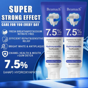 Especificação: Nome: 7,5% de creme dental de hidroxiapatita Prazo de validade: 3 anos Conteúdo líquido: 120 g/4,23 onças Eficácia: hálito refrescante, mantenha a boca úmida, fresca e perfumada. A embalagem inclui: 2* Creme dental de nanohidroxiapatita – Fórmula enriquecida com hidroxiapatita: alimentada com hidroxiapatita, um mineral natural que ajuda a restaurar e fortalecer o esmalte dentário com eficácia, protegendo os dentes do desgaste diário. – Suave para dentes sensíveis: nosso creme dental com hidroxiapatita de 7,5% fornece uma limpeza suave e completa, tornando-o perfeito para dentes sensíveis sem causar desconforto ou irritação. – Proteção avançada de esmalte: Este creme dental nano hidroxiapatita foi projetado para reparar e proteger o esmalte dentário, reduzindo o risco de cáries e erosão, promovendo a saúde bucal a longo prazo. – Sem flúor e segura: desfrute de um creme dental sem flúor que fornece proteção avançada ao esmalte, garantindo um cuidado seguro e eficaz com hidroxiapatita sem a necessidade de produtos químicos agressivos. – Essencial para o uso diário: projetado para o uso diário, este creme dental apoia a saúde bucal geral, mantendo os dentes fortes e a boca fresca com a escovação regular.