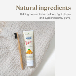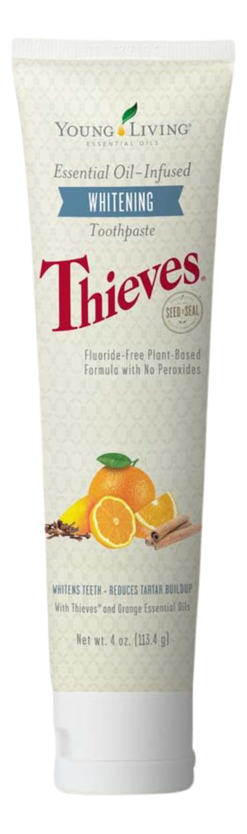 Apresentamos o creme dental branqueador Young Living Thieves, atendimento odontológico premium feito cuidadosamente para você. Este creme dental não é apenas vegano, mas também orgânico, garantindo que você limpe os dentes apenas com os melhores ingredientes. Com óleo essencial Young Living Thieves, esse creme dental natural oferece um sabor fresco e revigorante, ao mesmo tempo em que promove dentes e higiene bucal saudáveis. Nosso creme dental vegano é isento de flúor e foi desenvolvido com os mais altos padrões de qualidade em mente. Graças aos seus componentes naturais, ele atua como um excelente removedor de placa bacteriana para os dentes, ajudando você a manter uma saúde bucal perfeita. É uma adição excepcional aos seus produtos de cuidados pessoais, oferecendo uma opção ética e sem culpa para cuidados bucais. Experimente os impressionantes benefícios de clareamento dental de nosso creme dental vegano. Esta fórmula clareadora de creme dental ajuda você a obter um sorriso mais brilhante, removendo suavemente as manchas para revelar os dentes clareados. É a escolha perfeita para quem procura um creme dental clareador natural e eficaz. O óleo essencial Young Living Thieves incorporado em nossa pasta de dente traz uma mistura única de óleos essenciais de cravo, limão, canela, eucalipto radiata e alecrim. Essa mistura potente não só oferece um aroma fresco e picante, mas também ajuda a limpar gengivas e dentes. Nossa fórmula de creme dental vegano sem flúor garante uma limpeza poderosa. É um creme dental sem flúor para adultos que valorizam a pureza e a saúde, e vem em um tamanho prático de 4 onças, perfeito para uso doméstico e para viagens. – Clareamento natural dos dentes: o creme dental branqueador Thieves da Young Living é especialmente formulado para clarear naturalmente os dentes, ajudando você a obter um sorriso mais brilhante e radiante – Fórmula sem flúor: esta pasta de dente apresenta uma fórmula sem flúor, proporcionando uma fórmula suave e abordagem natural à higiene bucal sem comprometer a eficácia da limpeza – Ingredientes confiáveis: elaborados com ingredientes certificados, incluindo o poder da mistura de óleos essenciais Thieves, esta pasta de dente oferece uma abordagem natural e holística ao atendimento odontológico – Sabor refrescante de menta: desfrute do sabor revigorante e refrescante da menta enquanto escova os dentes com o creme dental branqueador Thieves da Young Living, deixando sua boca limpa e revitalizada. – Qualidade e cuidado: a Young Living está comprometida em oferecer produtos de higiene bucal premium. Este creme dental é meticulosamente elaborado com a qualidade em mente, garantindo que você receba uma solução odontológica eficaz