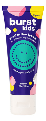 Pasta de dente infantil BurstKids Marshmallow Sparkle com flúor — Pasta de dente saborosa para crianças e crianças pequenas — Pasta de dente anticavitária, sem corante, vegana e segura para crianças de 2 a 4 onças — SABOR DELICIOSO: Meu Deus, tem o mesmo sabor de uma pasta de dente com sabor de marshmallow que as crianças adoram. O sabor delicioso de marshmallow aprovado por crianças é isento de açúcar com um toque sutil de menta para dar às crianças uma sensação de menta enquanto refresca o hálito! – PROTEÇÃO EFICAZ E SEGURA DA CAVIDADE: Nosso creme dental infantil com flúor ajuda a prevenir cáries, reduzir a placa bacteriana, remineralizar e fortalecer o esmalte. – SUAVE: Feito para as bocas mais sensíveis, nosso creme dental para crianças e crianças pequenas tem um baixo índice de RDA (Abrasividade Relativa da Dentina), o que significa que a escovação será mais confortável. – INGREDIENTES LIMPOS: Feito com xilitol para afastar bactérias nocivas e ica para limpar e polir. Sem açúcares, SLS, adoçantes ou sabores artificiais, corantes ou ftalatos. – A MELHOR ESCOLHA: vegana, sem glúten e sem crueldade. Nossos tubos são feitos de plástico 100% reciclável sem BPA e são feitos nos EUA.