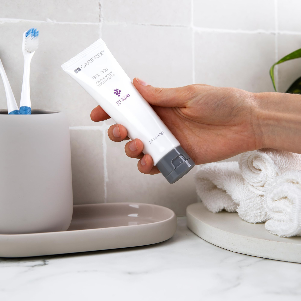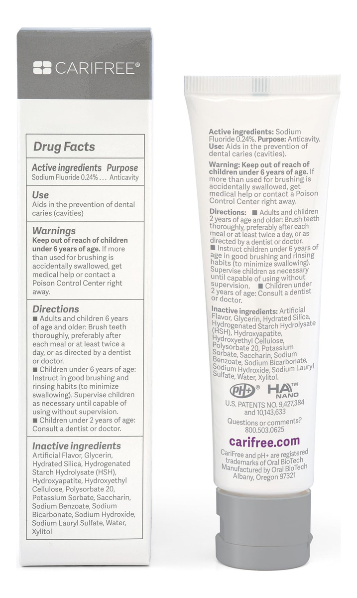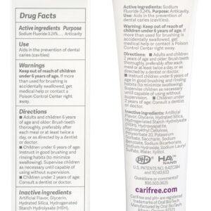 O CARIFree Gel 1100 é um gel dental de baixa abrasão que combina os benefícios anticáries comprovados de 0,24% de fluoreto de sódio neutro com cristalitos de nanohidroxiapatita biodisponíveis, xilitol e a tecnologia pH+ exclusiva e patenteada da CARIFREE. Cada caixa contém um tubo de 2,4 onças. Tamanho aprovado para viagens aéreas! Aproximadamente um mês de uso (quando usado duas vezes ao dia). – [VENÇA A BATALHA CONTRA A CÁRIE DENTÁRIA]: Você já se perguntou por que alguns de nós continuam tendo cáries apesar da higiene bucal meticulosa, enquanto outros que raramente escovam e usam fio dental não o fazem? O risco de cáries varia de pessoa para pessoa e é baseado em hábitos alimentares, higiene (escovação e uso do fio dental), fluxo de saliva e outros fatores. * NOVO VISUAL e tubo maior de 2,4 onças (20% a mais!) anteriormente chamado CARIFree CTx4 Gel 1100; o mesmo ótimo produto! * – [PROTEJA SEU SORRISO]: O CARIFree citrus Gel 1100 contém 0,24% de fluoreto de sódio (1100 ppm), que interrompe as cáries e previne a cárie dentária e manchas brancas. Evidências mostram que o flúor fortalece os dentes. O CARIFree Gel 1100 também contém nano-hidroxiapatita, um componente natural da saliva, e o mineral do qual seus dentes são feitos. Em combinação, eles funcionam juntos para ajudar a proteger seu sorriso. – [FORMULADO COM XILITOL]: O Gel 1100 contém 25% de xilitol! O xilitol é um ingrediente natural de sabor doce encontrado em muitos tipos de plantas. Pesquisas mostram que o uso regular de produtos ricos em xilitol pode reduzir o risco de cáries dentárias. – [TECNOLOGIA PATENTEADA de pH+]: Estudos sugerem que a cárie dentária é uma função do baixo pH. Manter um equilíbrio de pH elevado ou neutro ajuda a manter o esmalte dentário e o sorriso saudáveis. O CARIFree Gel 1100 contém tecnologia patenteada de pH+ para elevar o pH da boca, mantendo-a equilibrada. Patente norte-americana Nº 9.427.384 e 10.143.633. – [FAÇA UM INVESTIMENTO EM SUA SAÚDE]: Você está cansado de consultas odontológicas que resultam em obturações, coroas e canais radiculares? Entendemos a frustração, e foi essa frustração que levou o Dr. Kim Kutsch DMD a desenvolver produtos de higiene bucal que funcionaram para seus pacientes. Produzidos em Albany, Oregon, nossos géis são seguros para uso diário, aprovados para viagens, não abrasivos para sensibilidade e comprovados cientificamente para evitar cáries. Nossa missão é ajudar nossos clientes a se tornarem livres de cáries por toda a vida!