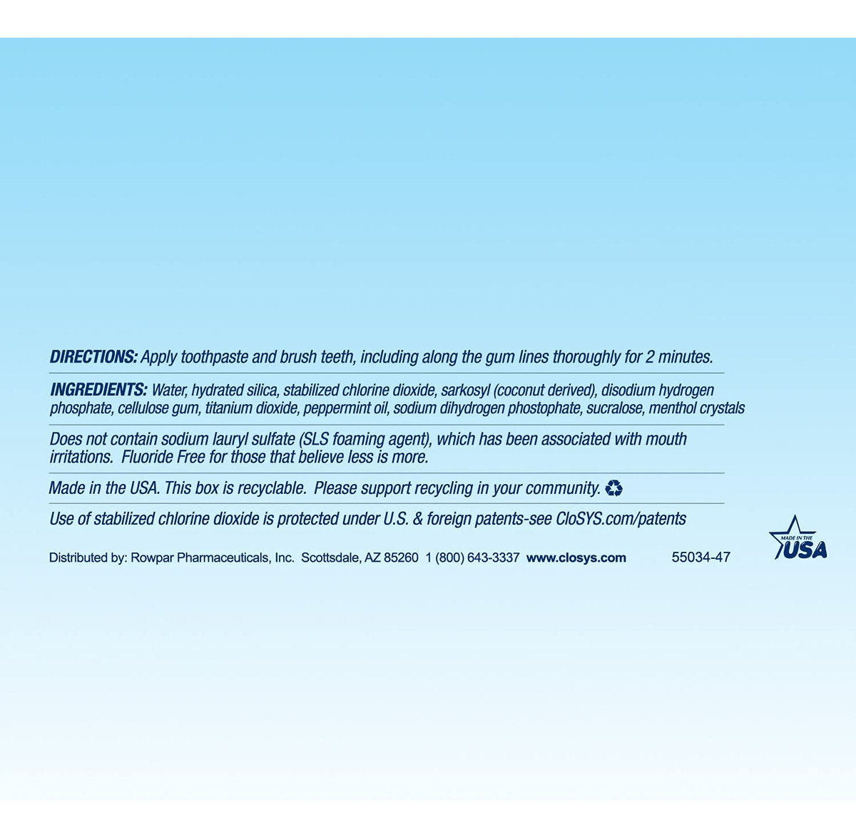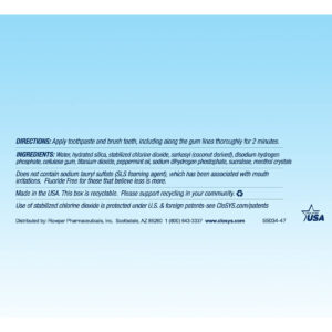 Pasta de dente sem flúor CloSys, 3,4 onças, tamanho de viagem, menta suave, compatível com TSA, clareadora, protetora do esmalte, sem sulfato – Promove a saúde bucal – A pasta de dente sem flúor CloSys com sabor suave de menta elimina bactérias do mau hálito, controla o crescimento do tártaro e reduz a inflamação da gengiva para uma boca mais limpa e fresca após cada escova. – Sem ingredientes nocivos – Os cremes dentais CloSys são isentos de SLS, tricíclicos sem losana, sem sulfato e sem glúten. Sem agentes espumantes agressivos que irritem ou danifiquem a boca. – Incomumente suave – A fórmula suave com pH balanceado é ativada naturalmente para neutralizar a placa bacteriana e manter um ambiente não ácido na boca. – Limpa e refrescante – Para um frescor duradouro e um sorriso branco saudável, o creme dental sem flúor CloSys tem o poder de eliminar os odores do mau hálito e clarear os dentes sem danificar ou remover o esmalte.