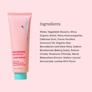 Creme dental branqueador Cocofloss Cocoshine, remineraliza e repara dentes sensíveis, sem flúor com n-HA, adequado para crianças, Lychee Breeze, 3,4 onças — REMINERALIZA EFETIVAMENTE COM NANO-HIDROXIAPATITA: apresenta ~ 20% de NanoXiM CarePaste da Fluidinova, atualmente a única nano-hidroxiapatita aprovada como segura pelas autoridades europeias do Comitê Científico de Segurança do Consumidor (SCCS). – ATÉ 2 TONS MAIS BRANCOS EM 1 SEMANA: o N-ha feito com os mesmos minerais dos dentes promove um brilho mais refletivo, enquanto o bicarbonato de sódio e a sílica removem suavemente as manchas superficiais. Obtenha dentes mais brilhantes e brancos em apenas 1 semana (Relatório do Laboratório Intertek, 23/08/2023). – ATENDE PESSOAS COM DENTES SENSÍVEIS: após apenas 1 dia de escovação com Cocoshine, o N-ha preenche os pequenos túneis que levam aos nervos. (Relatório do Laboratório Intertek, 25/08/2023). – FÓRMULA CUIDADOSAMENTE ELABORADA: Até mesmo o ingrediente foi escolhido por sua eficácia, incluindo xilitol favorável ao microbioma, bicarbonato de sódio que equilibra o pH, aloe vera calmante e muito mais. Sem triclosan, peróxido, sulfatos, parabenos, propilenoglicol ou corantes artificiais. – SUA DOSE DIÁRIA DE DOPAMINA DENTAL: As irmãs Dra. Chrystle Cu e Cat Cu, dentista e ex-odiadora do fio dental, criaram um novo tipo de cuidado bucal que desperta alegria e comprovadamente funciona. Porque cada sorriso é icônico e merece um cuidado icônico.