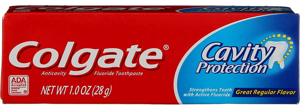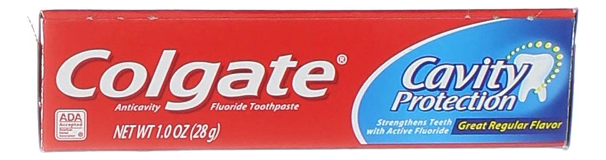Creme dental com flúor Colgate Cavity Protection, ótimo sabor normal, tamanho de viagem aprovado pela TSA, 1 onça (pacote com 8) — Ajuda a proteger os dentes contra cáries. — Ótimo sabor normal. — Comprovado clinicamente.