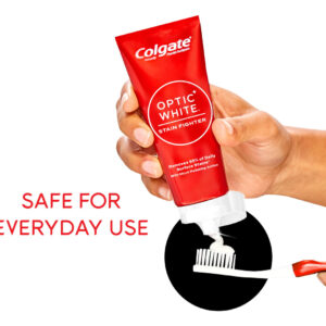 Pasta de dente branqueadora Colgate Optic White Stain Fighter, limpa com sabor de menta, remove com segurança as manchas superficiais, segura para esmalte para uso diário, creme dental clareador de dentes com flúor, tubo de 4,2 onças – Um tubo de 4,2 onças de creme dental branqueador Colgate Optic White Stain Fighter, Clean Mint – Optic White Stain Fighter é uma pasta de dentes que combate manchas e ajuda a evitar a formação de novas manchas – Remove 5 vezes mais manchas superficiais com ação de micropolimento (versus creme dental comum não branqueador, após 2 semanas de uso contínuo) – Este creme dental branqueador contém Tecnologia clinicamente comprovada para remover manchas superficiais com segurança e é segura para uso diário – O creme dental Clean Mint refresca o hálito e deixa a boca limpa – O creme dental Clean Mint é uma pasta branca com um sabor refrescante de menta – O creme dental com flúor anticavity ajuda a proteger contra cáries – O creme dental Optic White é feito pela Colgate, a marca que conhece o poder de um sorriso saudável