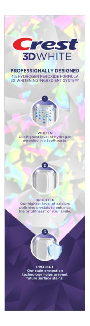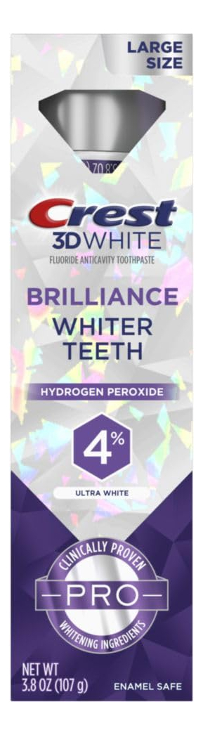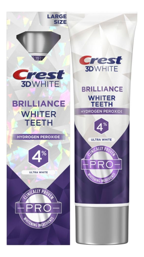 Creme dental branqueador de dentes Crest 3D White Brilliance Pro Ultra White, 3,8 onças, creme dental com flúor anticavity, 4% de peróxido de hidrogênio, proteção ativa de clareamento – Receba um tubo de 3,8 onças de creme dental Crest 3D White Brilliance Pro Ultra White – Nosso nível mais alto de peróxido de hidrogênio em uma pasta de dente – Possui um sistema de ingredientes clareadores triplo – A fórmula fornece proteção ativa de clareamento com 4% de peróxido de hidrogênio – Fórmula com 4% de peróxido de hidrogênio em uma pasta de dente para proteção contra cavidades