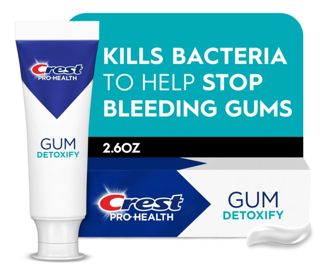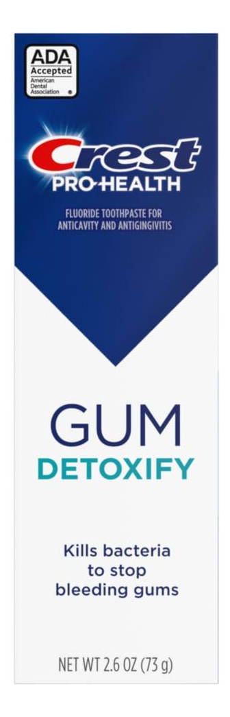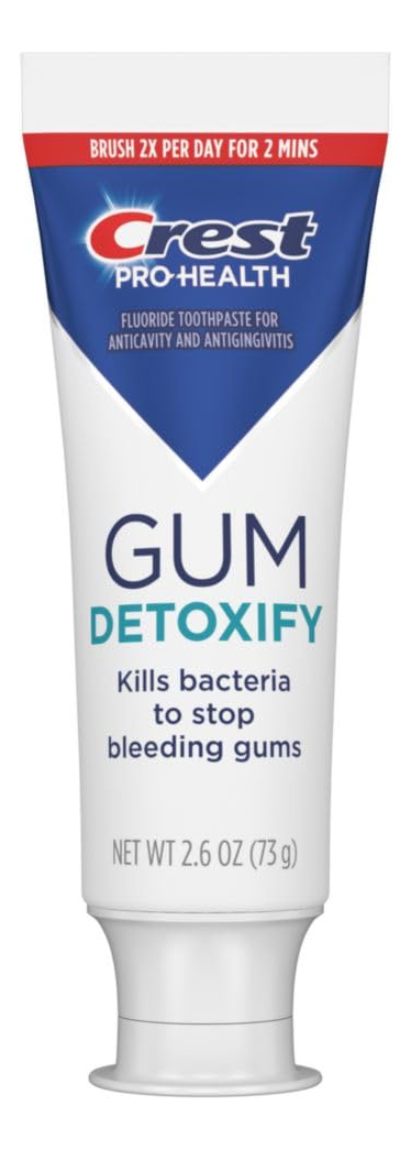 Creme dental Crest Pro-Health Gum Detoxify Deep Clean de 2,6 onças — Creme dental anticavitário e antibacteriano com flúor, clinicamente comprovado, proteção da gengiva e do esmalte, controle de placa bacteriana — Receba um tubo de 2,6 onças do creme dental Crest Pro-Health Gum Detoxify Deep Clean — Ajuda a curar gengivas e interromper o sangramento — Promove o processo de cicatrização gengival desde o primeiro dia * *Ao neutralizar a placa bacteriana – Projetado profissionalmente para dar para uma gengiva profundamente limpa e saudável – Formulada com ingredientes clinicamente comprovados que ajudam a reverter a gengivite