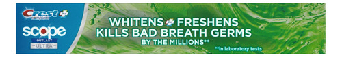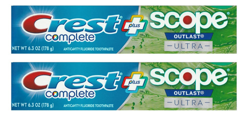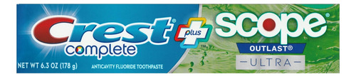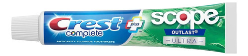 Crest Complete criou uma tecnologia revolucionária que proporciona uma sensação de hálito fresco, duradouro e fresco. Este creme dental ajuda a combater cáries e tártaro enquanto trabalha para remover manchas superficiais diárias que podem ser causadas por café, chá, vinho, cigarros e muito mais. É a combinação definitiva de limpo e fresco! A fórmula do creme dental Crest Complete Plus Scope Outlast Ultra limpa locais de difícil acesso da boca e ajuda a eliminar as bactérias causadoras do mau hálito, proporcionando um sabor refrescante do Scope Outlast Ultra.
