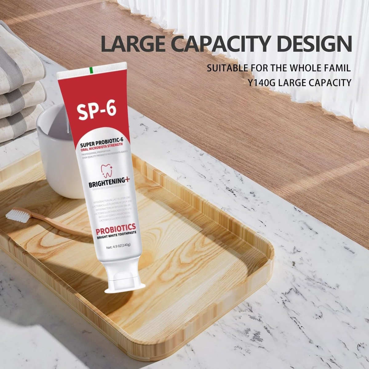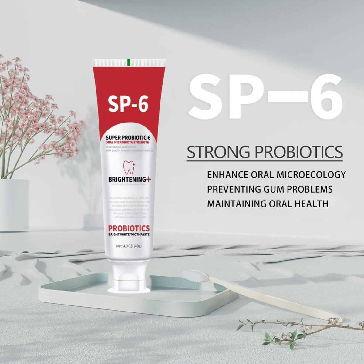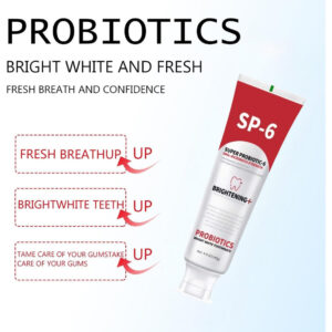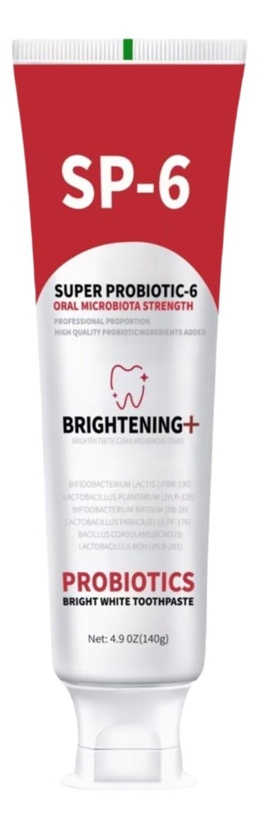 Creme dental branqueador probiótico SP-6, para clareamento dentário e saúde gengival, fórmula aprimorada com 6 probióticos, sem flúor, sabor fresco de menta, 4,9 onças – Pasta de dente SP-6: esta fórmula aprimorada com 6 probióticos, melhora efetivamente as manchas superficiais, reduz o odor oral, previne a cárie dentária e protege a saúde bucal – Fórmula suave: esta fórmula é suave para dentes sensíveis, tornando-a ideal para o uso diário sem causar irritação. Feito com uma fórmula natural, oferece proteção total para suas gengivas e dentes – Dentes profundamente limpos: este creme dental ajuda a limpar os dentes com eficácia, remover partículas de alimentos e manchas profundas embutidas neles – Frescor duradouro: este creme dental mantém seu hálito refrescante, o sabor fresco de menta deixa seu hálito revigorado por horas – Fácil de usar: basta apertar levemente, aplicar um pedaço de pasta de dente na escova de dentes e escovar como de costume. Escove os dentes com ele por 3 minutos, duas vezes ao dia, para obter melhores resultados