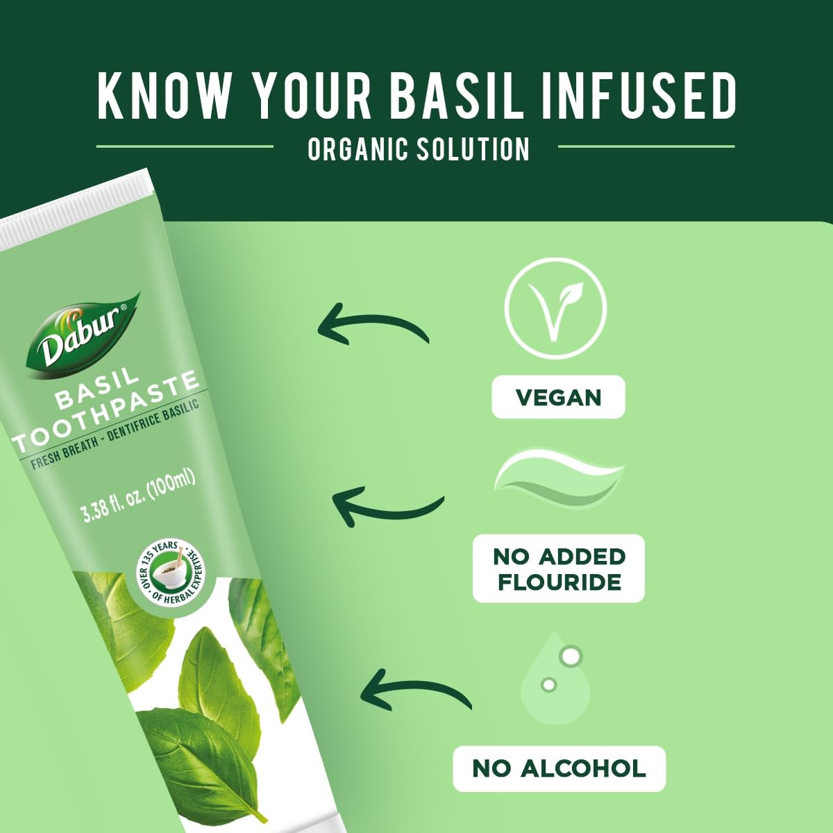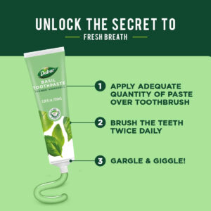 Pasta de dente Dabur Basil 100ml – EUA – PASTA DE DENTE SUAVE E REFRESCANTE: formulada com ingredientes totalmente naturais, esta pasta de dente oferece uma limpeza suave e eficaz. Ele fornece uma explosão refrescante de manjericão para um hálito naturalmente fresco e uma sensação deliciosa após cada uso. Mergulhe nessa atmosfera natural de manjericão para ter uma sensação de limpeza que é simplesmente incrível após cada pincel. – NUTRIÇÃO ORAL: Experimente os benefícios do manjericão, uma erva natural conhecida por prevenir o mau hálito. Nosso creme dental sem flúor, feito com ingredientes naturais, ajuda a proteger as gengivas e mantém os dentes fortes. É um companheiro dentário gentil que não apenas protege as gengivas e promove dentes fortes, mas também traz um toque de ervas à sua rotina diária. – ROTINA SAUDÁVEL DE CREME DENTAL: Torne a escovação dos dentes uma rotina especial aplicando uma boa quantidade de nossa pasta de dente na escova de dentes. Faça isso duas vezes ao dia ou siga o conselho do seu médico para um hálito saudável e naturalmente fresco. Você pode confiar em Dabur para lhe dar um sorriso que diz muito sobre sua higiene bucal. – SORRIA COM CONFIANÇA: focada em manter seu cuidado dental natural, cada escova se torna um passo em direção a uma pessoa naturalmente radiante. A Dabur torna sua jornada para um sorriso mais saudável e feliz de forma simples e eficaz. Abrace a bondade do manjericão e deixe sua rotina odontológica diária fazer parte de seu caminho para um sorriso confiante e brilhante. – SOBRE A MARCA: Dabur, líder global em Ayurveda e saúde natural, oferece uma ampla gama de mais de 250 produtos naturais e fitoterápicos confiáveis e autênticos. Experimente a qualidade e a conveniência ao descobrir os benefícios holísticos de nossa renomada marca. Confie em Dabur para seu bem-estar e abrace o poder da natureza.