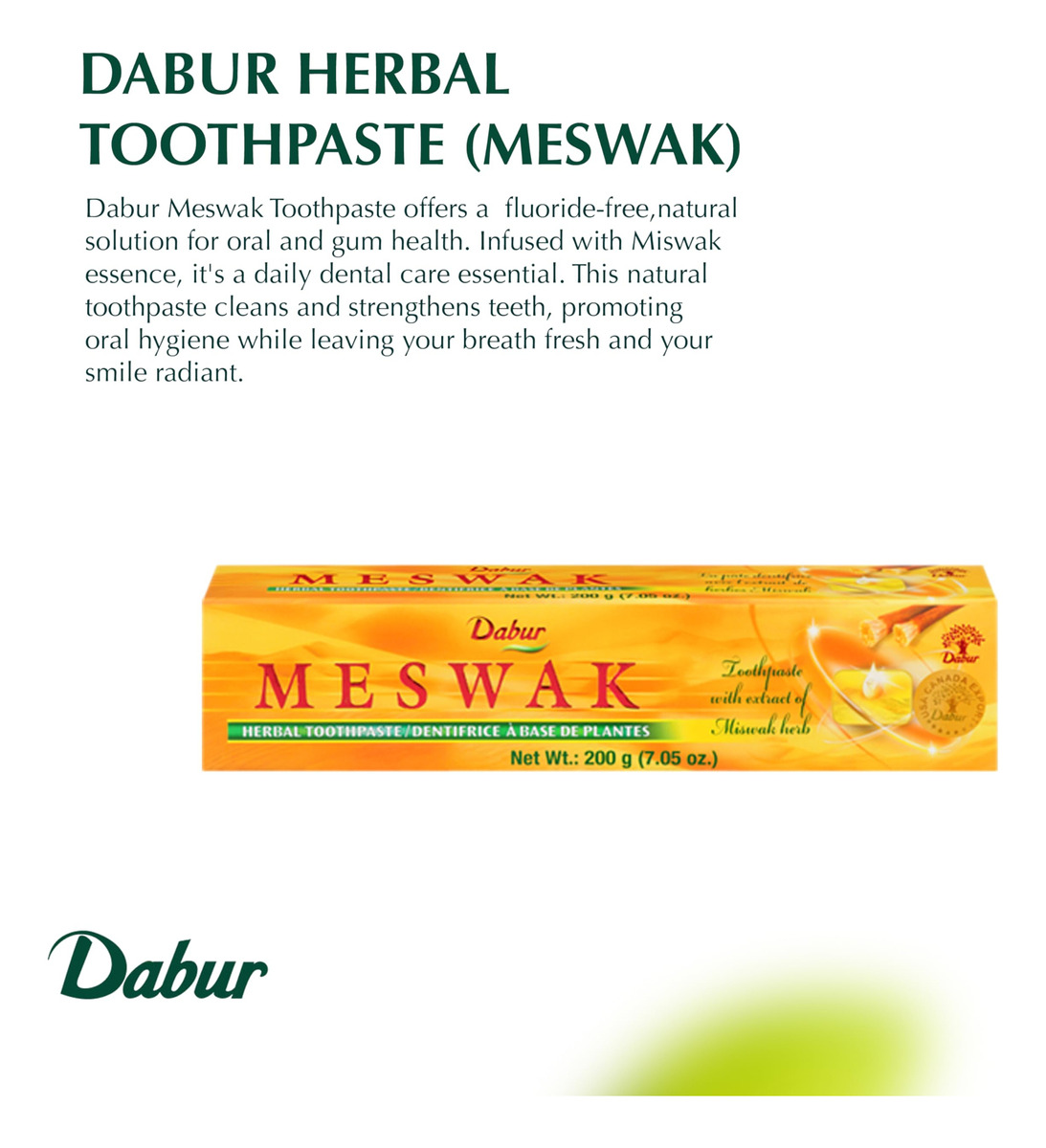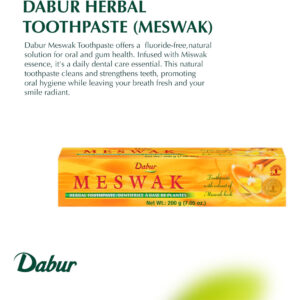 Pasta de dente Dabur Meswak – Pasta de dente sem flúor, pasta de dente natural para saúde bucal e gengival, pasta de dente para cuidados dentários. Pasta de dente natural com essência de Miswak, diária para higiene bucal (pacote com 3) – POR QUE ESCOLHER MESWAK: Meswak, também conhecida como Miswak, é obtida dos galhos da árvore Arak. Ele tem sido tradicionalmente usado para atendimento odontológico há séculos para limpar, fortalecer e proteger naturalmente os dentes contra cáries. O creme dental Dabur Meswak foi desenvolvido para ajudar a prevenir cáries, acúmulo de tártaro e placa bacteriana e mau cheiro, melhorando a aderência gengival. – FÓRMULA ESSENCIAL: Este creme dental natural contém óleos essenciais para evitar o acúmulo de sujeira, taninos para proteger problemas de placa e gengiva, resinas para proteger o esmalte e vitaminas C. Não contém flúor, parabenos, triclosan ou formalina. – CUIDADO BUCAL: Para manter dentes e gengivas saudáveis, pratique rotinas básicas de higiene bucal, como escovar duas vezes ao dia e usar fio dental diariamente. Aplique uma quantidade adequada dessa pasta de dente sem flúor na escova de dentes e escove os dentes conforme necessário para proteção dental geral e hálito fresco. – PASTA DE DENTE PARA VIAGEM: com 200 gramas, essa pasta de dente em tubo é compacta e leve, facilitando a embalagem em uma mala ou bolsa de mão. Seja em casa ou nas férias, é uma solução prática e natural para viajantes que buscam uma abordagem prática para manter a higiene bucal adequada enquanto viajam. – UMA MARCA EM QUE VOCÊ PODE CONFIAR: Temos o compromisso de fornecer produtos autênticos e de qualidade para clientes em todo o mundo. Nós nos esforçamos e estamos sempre em busca de inovação para oferecer produtos que possam ajudar as pessoas a viverem vidas mais saudáveis.