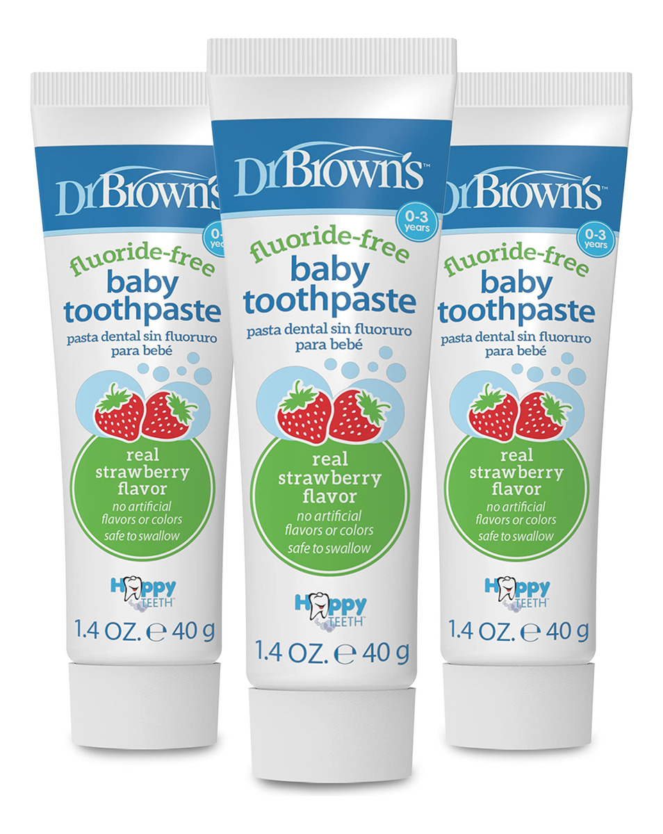 Nada além de dentes limpos! O creme dental para bebês sem flúor Dr. Browns limpa com segurança e eficácia. Sem sabores, cores ou conservantes artificiais. Não se preocupe se for ingerido. Nosso creme dental natural para bebês é uma maneira saudável de ajudar seu bebê a aprender uma boa higiene dental. Além disso, eles vão adorar o verdadeiro sabor de morango! Basta adicionar uma gota do tamanho de uma ervilha a uma escova de cerdas extra macias e, com sua ajuda e supervisão, ensiná-los a usar pequenos movimentos circulares nos dentes e gengivas, duas vezes ao dia, todos os dias. Nunca deixe seu filho sozinho com uma escova ou pasta de dente. Disponível em tubo de 1,4 onças. 0 a 3 anos.