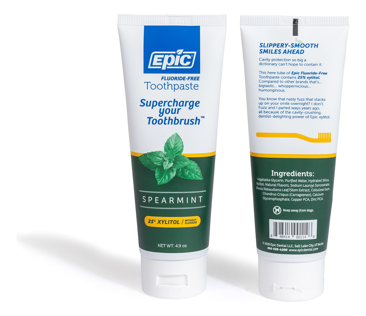 Pasta de dente com xilitol Epic — Pasta de dente sem açúcar e sem aspartame, adoçada com xilitol para limpar os dentes e a saúde das gengivas (hortelã, tubo de 4,9 onças, 2 tubos) — Pasta de dente sem açúcar e sem sabor sem açúcar: a pasta de dentes Epic é feita com 25% de xilitol para adicionar um sabor naturalmente doce que você vai adorar; sem açúcar e sem sulfato de louro de sódio. — Ajuda a impedir a decomposição dentária Encoraja e incentiva gengivas saudáveis: esta pasta de dentes totalmente natural é isenta de glúten, não transgênica e vegana, tornando-a a alternativa perfeita aos produtos açucarados e uma opção segura e preventiva para crianças. – Elimine o mau hálito E cárie dentária: feita com 25% de xilitol, a pasta de dente Epic sem flúor oferece sempre um sabor incrível para um sorriso fresco e saudável; além disso, ajuda a reduzir a boca seca. – Assine e economize: embalada em 2 tubos de 4,9 onças cada, esta pasta de dente é armazenada facilmente, permanece fresca e funciona muito bem em um modelo de assinatura. – Saboreie o sabor de hortelã: a fórmula especial da Epic é exclusiva e exclusiva; cuide do mau hálito e bactérias causadoras de cáries enquanto desfrutamos do nosso sabor comprovado de hortelã.