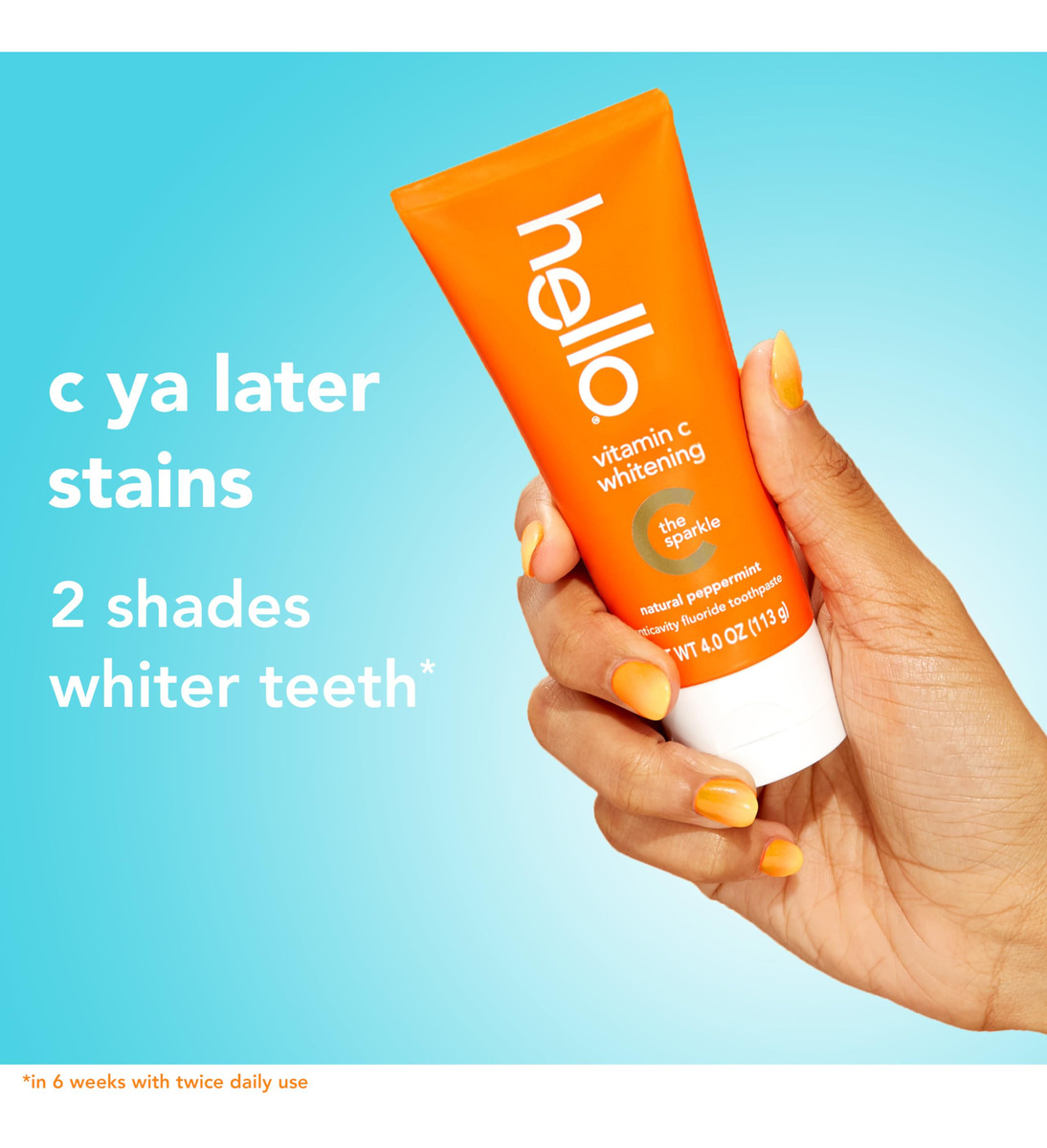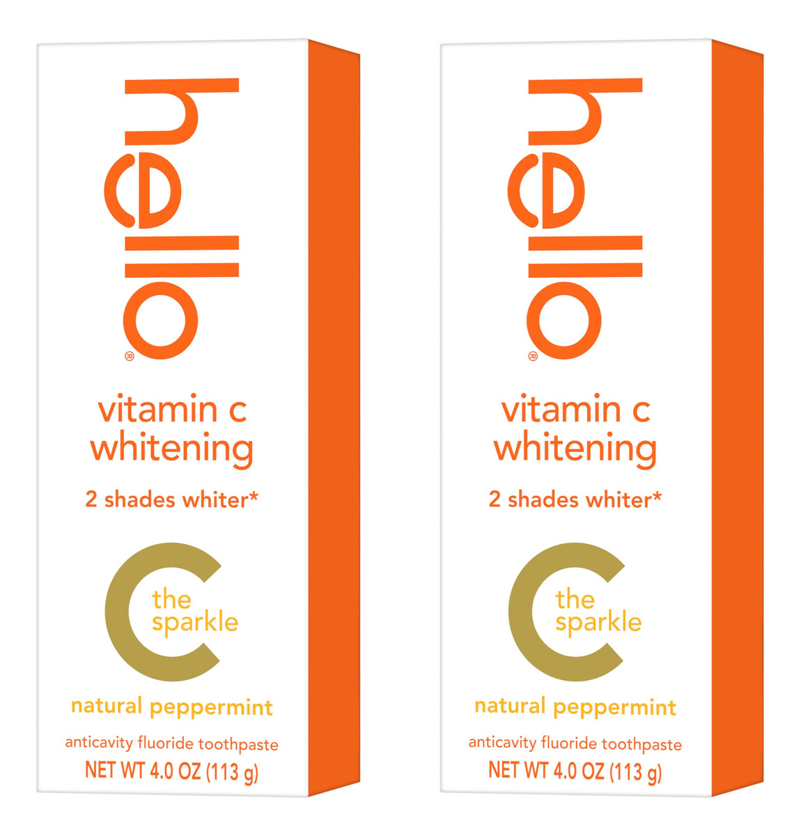 Hello Creme dental branqueador de vitamina C com flúor, sem SLS, ajuda a remover manchas superficiais e refrescar o hálito, sabor natural de hortelã, 4,0 onças (pacote com 2) – Inclui dois (2) tubos de 4,0 onças de creme dental clareador Hello Vitamin C com flúor – Este creme dental clareador anticavity clareia os dentes em até 2 tons de branco* (*em 6 semanas com uso duas vezes ao dia) – Este creme dental branqueador anticavity clareia os dentes em até 2 tons de branco* (*em 6 semanas com uso duas vezes ao dia) remove 94% das manchas** usando vitamina C, uma alternativa ao peróxido para clareamento (**em 3 semanas com uso duas vezes ao dia) – O sabor refrescante e natural da pasta de dente de hortelã tem um sabor total incrível e ajuda a refrescar o hálito – O creme dental clareador Hello Vitamin C para adultos é seguro para o uso diário e ajuda a prevenir cáries com sua fórmula anticavitária à base de flúor
