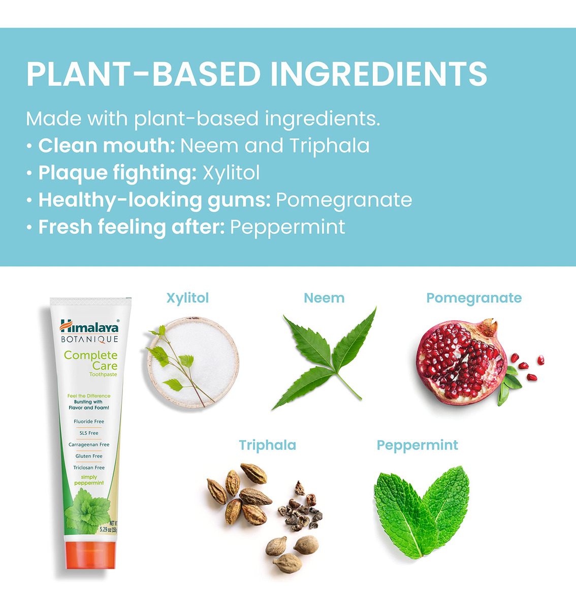 Pasta de dente Himalaya Botanique Complete Care, à base de ervas, sabor de hortelã, combate a placa bacteriana, refresca o hálito, sem flúor, sem sabores artificiais, sem SLS, sem crueldade, espumante, 5,29 onças, pacote com 4 — Pasta de dente botânica: revele um sorriso mais brilhante com esta pasta de dente botânica. Creme dental sem flúor para limpar os dentes, refrescar o hálito e reduzir a placa bacteriana. – Fórmula à base de ervas: a pasta de dentes é suave para os dentes e gengivas, ao mesmo tempo que limpa com eficácia. Com Neem, uma planta tropical tradicionalmente usada por suas habilidades de limpeza, e romã para combater a placa bacteriana. – Sabor fresco: faz com que seus dentes pareçam limpos e brilhantes, sem cores ou sabores artificiais. Fórmula suave para cuidados dentários diários com espuma satisfatória e de limpeza profunda. Escolha entre menta, hortelã, canela ou hortelã. – Fácil de usar: escove bem após as refeições ou pelo menos duas vezes por dia para obter um sorriso mais brilhante e tão bonito quanto bonito. Adicione este creme dental à base de ervas à sua rotina para mostrar seus dentes mais saudáveis e felizes. – Feito com bondade: a fórmula vegana e livre de crueldade o torna uma adição saudável à sua rotina de higiene bucal. Sem flúor, glúten, triclosan, SLS, carragenina ou cores ou sabores artificiais. De uma empresa familiar, confiável desde 1930.