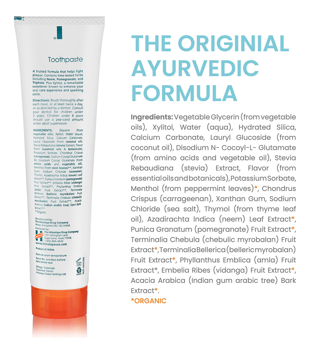 Creme dental botânico Himalaya Botanique Original de Neem e Romã, combate a placa bacteriana, ilumina os dentes, sem flúor, sem sabores artificiais, sem SLS, sem crueldade, espumante, sabor de menta, 5,29 onças, 1 pacote — Pasta de dente sem flúor: ilumine os dentes e combata a placa bacteriana com a pasta de dente Himalaya Botanique Neem e Romã, uma pasta de dente vegana para cuidados bucais diários. Suave para dentes e gengivas. – Ingredientes botânicos: a pasta de dente é formulada com Neem, uma planta tropical cujos galhos são usados como escovas de dente há milhares de anos, e romã para combater a placa bacteriana. – Sabor fresco e limpo: o sabor de menta à base de ervas do óleo essencial de menta faz com que seus dentes se sintam frescos. Fórmula suave para cuidados dentários diários. Sem comprometer a espuma e o sabor, para obter aquela sensação de limpeza, basta escovar. – Fácil de usar: escove bem após as refeições ou pelo menos duas vezes por dia para obter um sorriso mais claro e branco que seja tão bom quanto parece. Adicione essa pasta de dente à sua rotina para mostrar seus dentes mais saudáveis e felizes. – Feito com bondade: sem flúor, glúten, triclosan, SLS, carragenina ou cores ou sabores artificiais. A fórmula vegana e livre de crueldade faz com que seja uma adição saudável à sua rotina de higiene bucal. De uma empresa familiar, confiável desde 1930.