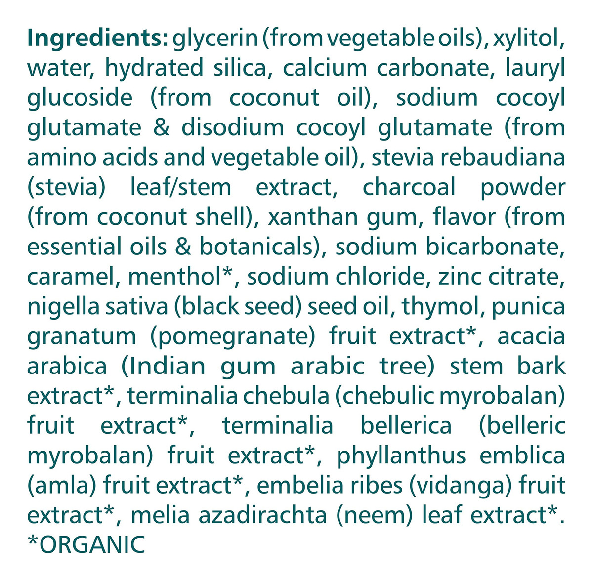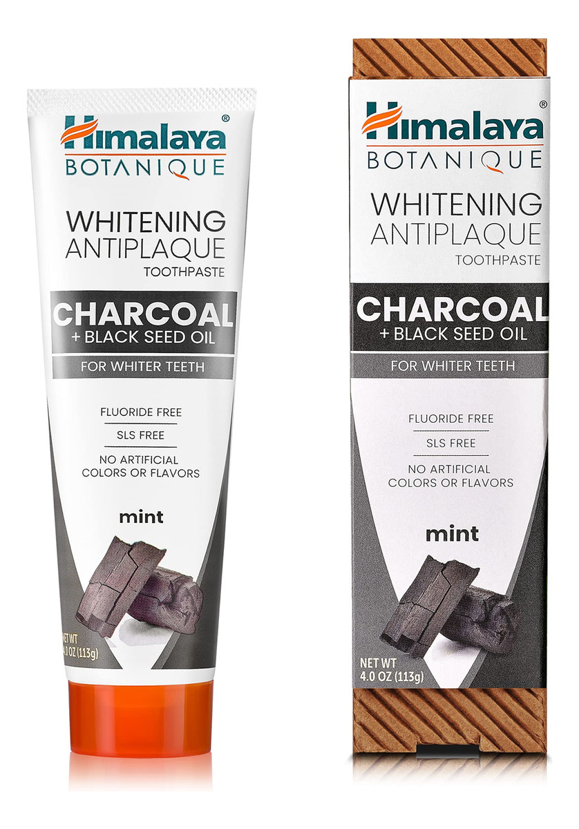 O creme dental Himalaya Botanique Charcoal + Black Seed Oil combina o poder de limpeza revolucionário do carvão vegetal e o conforto calmante do óleo de semente preta com estévia e a capacidade de limpar a espuma do óleo de coco. Esta pasta de dente fresca com menta não contém todas as coisas que você não quer. Sem flúor, sem triclosan. Formulado sem SLS, glúten e cores e sabores artificiais. Uma boa pasta de dente limpa para um hálito fresco e dentes mais brilhantes. – Limpeza e ingredientes exclusivos: deixe a poderosa ação clareadora do pó de carvão vegetal de casca de coco e a famosa capacidade de limpeza do óleo de semente preta deixarem sua boca mais fresca e seu sorriso mais brilhante. – Sabor suave e refrescante de menta: o óleo essencial de menta faz com que toda a boca fique fresca, limpa e viva novamente, enquanto ingredientes suaves e resistentes trazem dentes mais brilhantes e um sorriso vencedor. – UM CREME DENTAL LIMPO, SEM COMPROMETER A ESPUMA E O SABOR: Finalmente, um creme dental limpo pasta de dente sem extras indesejados, mas ainda tem um sabor e espuma maravilhosos! – LIVRE DAS COISAS QUE VOCÊ NÃO QUER: Sem flúor, sem triclosano, sem SLS (laurilsulfato de sódio), sem carragenina e sem glúten. – SEM CRUELDADE: nos preocupamos com nossos amigos peludos. É por isso que nunca testamos nossa pasta de dente em animais.