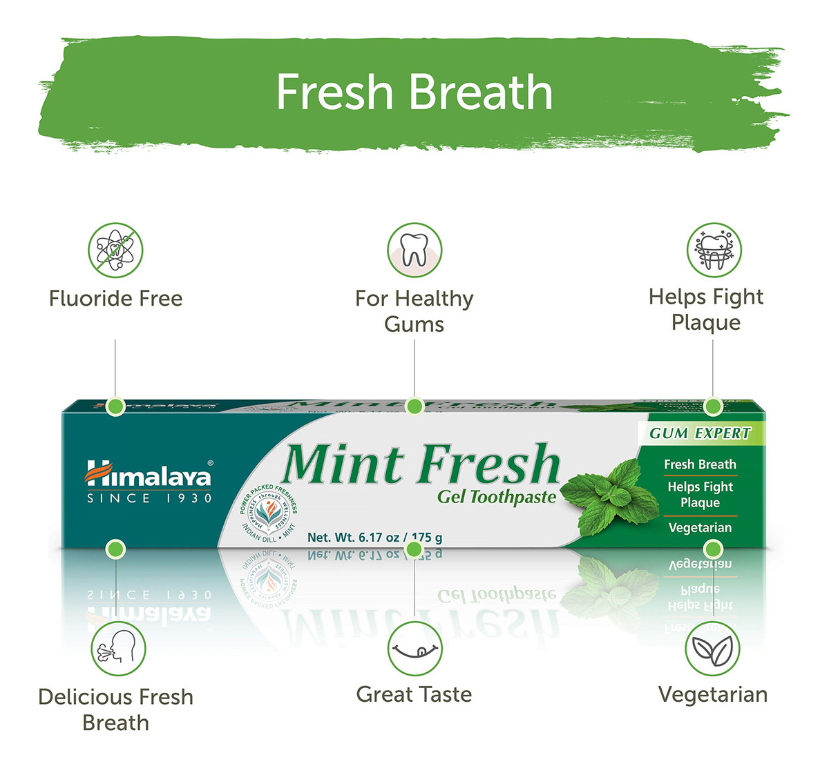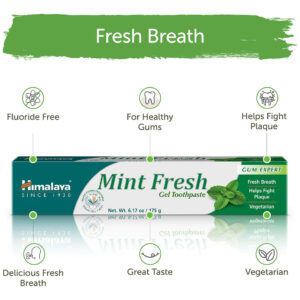 Creme dental Himalaya Mint Fresh Gel, sem flúor para reduzir a placa bacteriana e clarear os dentes, 6,17 onças — Creme dental em gel fresco sem flúor: o creme dental Himalay's Mint Fresh Gel contém ingredientes fitoterápicos refrescantes que garantem um hálito fresco de longa duração. – FRESCO EM MENTA COM DELICIOSO SABOR FRESCO: Não comprometa o sabor. Aproveite o mentol dos óleos de menta para manter o hálito fresco e a erva-doce para evitar o mau hálito. – CRAVO TONIFICANTE E CARDAMOMO REFRESCANTE: o cravo ajuda a suavizar e tonificar um sorriso radiante e o cardamomo ajuda a manter gengivas saudáveis. – Suporta gengivas com aparência saudável: Miswak, ou Peelu, um galho para limpeza de dentes feito da árvore pérsica de Salvadora, ajuda a reduzir a placa bacteriana e suporta suas gengivas. – SEM TESTES EM ANIMAIS: Nós nos preocupamos com nossos amigos peludos. É por isso que nunca testamos nossos produtos de higiene pessoal em animais.