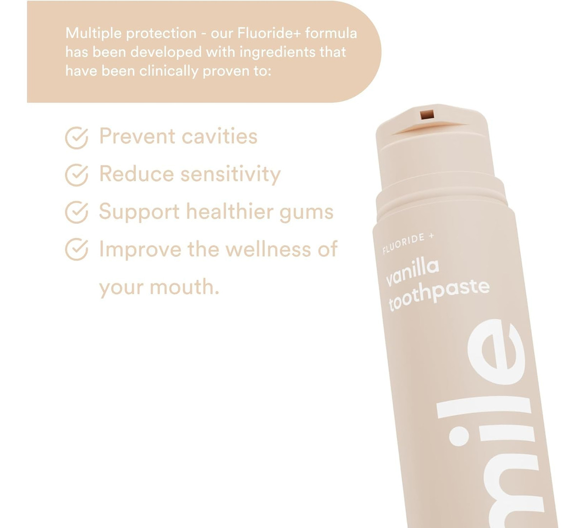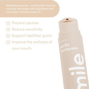 A pasta de dente de baunilha é tudo menos simples. Mais leve do que a cobertura de seu cupcake, esta deliciosa pasta de dente de sabor cremoso é preparada com perfeição para um sabor extremamente fresco. É realmente a cereja no topo da sua escova de dentes. – Dez cremes dentais de arrepiar a língua para escolher – Pasta de dente com sabor de baunilha com uma explosão de frescor – Linha de cremes dentais com sabor viral da Hismile – Fórmula com flúor para uma limpeza superior – Benefícios duradouros para a saúde bucal