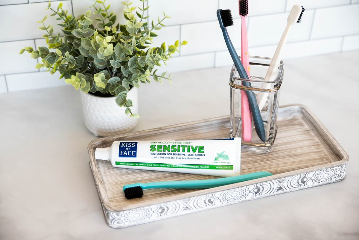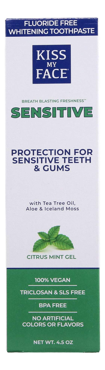 Creme dental em gel de menta cítrica sensível Kiss My Face, reduz a sensibilidade, remove a placa bacteriana e previne o tártaro, com adição de óleo de melaleuca, aloe e equinácea, sem cores ou sabores artificiais, 4,5 onças — Creme dental vegano sem SLS e sem flúor: o creme dental Kiss My Face Triple Action Herbal Mint Gel é um creme dental vegano sem SLS e sem flúor, que fornece o suporte oral necessário de que você precisa – REMOVE A PLACA BACTERIANA E EVITA O TÁRTARO: O creme dental Kiss My Face Sensitive Citrus Mint Gel é feito com uma mistura calmante de equinácea, óleo de melaleuca e aloe vera para ajudar reduz o acúmulo de placa bacteriana e tártaro – FRESCOR DE TIRAR O FÔLEGO: desfrute do alívio de uma boca suave e limpa com um toque refrescante de menta cítrica; obtenha um frescor de tirar o fôlego e reduza a sensibilidade dentária com o creme dental Kiss My Face Sensitive Citrus Mint – MISTURA DE CREME DENTAL SENSÍVEL: Nosso creme dental sensível contém nitrato de potássio, um dessensibilizador dental eficaz, que ajuda a reduzir e aliviar a dor e o desconforto causados por dentes sensíveis – KISS MY FACE: Temos orgulho de fabricar produtos de higiene pessoal saudáveis e de alta qualidade; nossa missão é combine ingredientes saudáveis para criar os produtos de cuidados pessoais mais eficazes em qualquer lugar