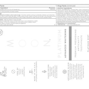 Apresentando o creme dental clareador dental mais avançado da MOON, um ápice na inovação em cuidados bucais. Este branqueador de dentes suave foi projetado especificamente para quem busca um clareamento dentário eficaz para dentes sensíveis. Com uma fórmula concentrada e de resultados rápidos, este produto de limpeza de dentes é um creme dental com flúor que os usuários adultos podem usar como removedor diário de manchas dentárias ou creme dental para dentes brancos e hálito fresco. Este esmalte dental contém flúor para proteção de cáries, o que o torna uma excelente escolha para quem se preocupa com o cuidado geral dos dentes. Como um creme dental com alto teor de flúor para adultos, ele pode fornecer uma camada extra de defesa contra cáries. Este creme dental também inclui dióxido de titânio, um removedor de manchas de dentes suave, mas eficaz, que garante que seus dentes permaneçam brancos e brilhantes. Uma das características de destaque deste creme dental branqueador é a mistura clareadora Advanced Elixir. Esta mistura é composta por 10 poderosos antioxidantes e ingredientes de óleos essenciais. Esses óleos essenciais não apenas tornam este gel de creme dental um poderoso clareador dental para clarear os dentes, mas também proporcionam uma experiência refrescante e revigorante a cada uso. Além disso, se você estiver lidando com manchas de café ou tabaco, nosso creme dental pode atuar como um removedor de manchas de café eficaz para dentes e creme dental para fumantes. É um produto versátil que funciona como polidor de dentes, creme dental removedor de placa bacteriana e creme dental branqueador sensível, tudo em um. O creme dental clareador para dentes sensíveis foi desenvolvido para minimizar o desconforto e maximizar a eficácia do clareamento. Disponível em um prático pacote de pasta de dente, este produto oferece um valor excepcional. Se você escolher um pacote de pasta de dente com 1 pacote ou um pacote múltiplo de pasta de dente, como nosso pacote com 2, você tem a certeza de receber um produto de primeira linha que atende aos mais altos padrões de tratamento dentário. – Nossa fórmula de clareamento mais avançada – Platinum Advanced é um creme dental clareador de dentes para adultos que desejam resultados rápidos e concentrados. Equipamos este creme dental com flúor para proteção de cáries e dióxido de titânio para ajudar a clarear suavemente os dentes. – Desenvolvido por Advanced Elixir – Este creme dental sem sls contém nossa mistura clareadora Advanced Elixir de 10 antioxidantes e óleos essenciais. Pode ajudar a manter gengivas saudáveis, e seu sabor platinado de menta pode ajudar a refrescar o hálito. – Vegano e livre de crueldade – Este creme dental com flúor usa ingredientes clareadores dentais, como dióxido de titânio e mica de origem ética, que podem polir suavemente os dentes para remover manchas e acúmulo de placa bacteriana. – Suave no esmalte – Formulado para oferecer cuidados bucais delicados com um sabor refrescante de menta no inverno e ajudar os usuários a permanecerem atualizados de sua higiene dental diária. Esta pasta de dente usa surfactantes à base de coco para proporcionar uma experiência de escovação com baixa espuma que é suave para o esmalte e ajuda a reduzir a irritação nas gengivas. – Oral Care Reimagined – MOON acredita que a beleza começa com seu sorriso. Estamos reimaginando a higiene bucal redefinindo o que significa cuidar dos dentes. Melhor design, melhores ingredientes e produtos melhores para você, como este creme dental branqueador de dentes sem SLS.