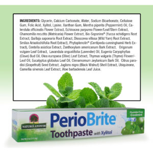 Pasta de dente Nature's Answer PerioBrite, hortelã fresca, 4 onças (pacote com 2) sem flúor com CoQ10 e ácido fólico | Clareia os dentes | Refresca o hálito | Remove a placa bacteriana | Minimiza a boca seca – Creme dental formulado por dentistas – Auxilia dentes e gengivas saudáveis – Ilumina os dentes e umedece as gengivas – O creme dental PerioBrite inclui CoQ10 e ácido fólico – Sem álcool, sem flúor, Sem adoçantes ou conservantes artificiais