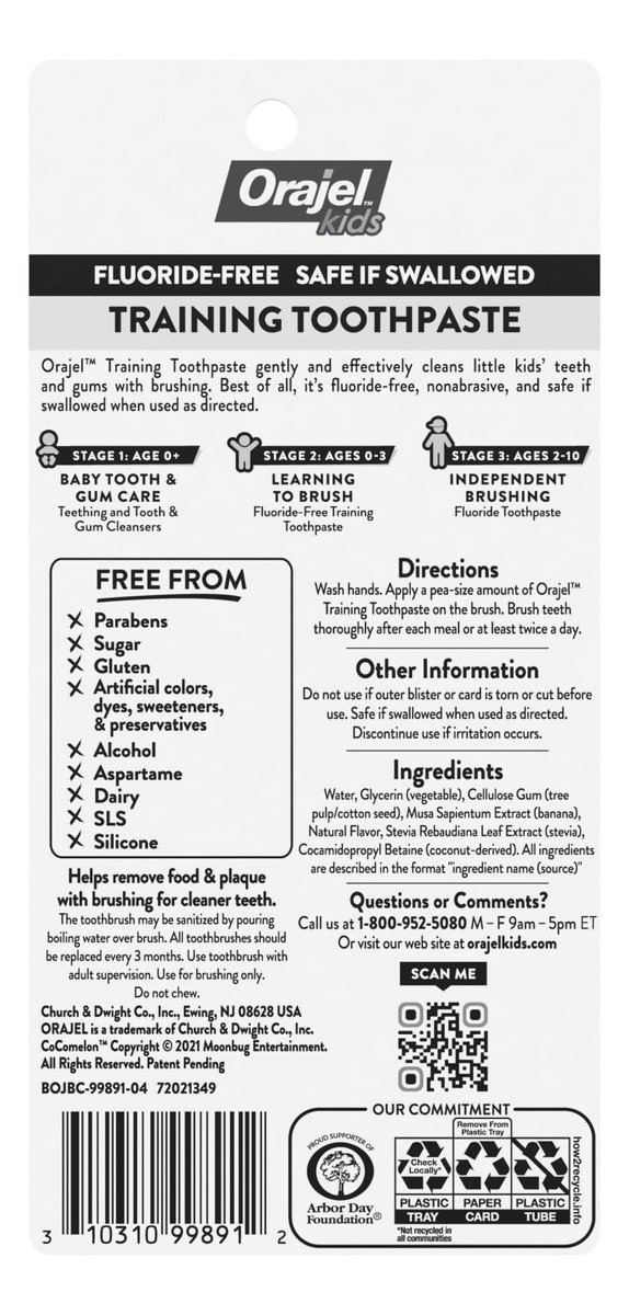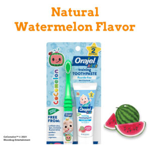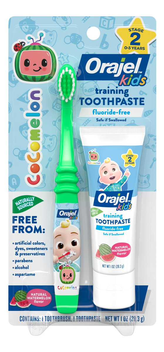 Creme dental de treinamento Orajel Kids CocoMelon com escova, (conjunto de 2 peças) — Limpa dentes e gengivas de forma suave e eficaz: o creme dental de treinamento Orajel ajuda a remover alimentos e placa bacteriana com a escovação para limpar os dentes. – Creme dental de treinamento sem flúor: nossa fórmula sem flúor é segura se ingerida quando usada conforme as instruções. – SABOR NATURAL DE MELANCIA: O ótimo sabor ajuda a estimular a escovação. As crianças adoram o sabor! – INGREDIENTES 100% DE ORIGEM NATURAL: Sem parabenos, açúcar, glúten, silicones, álcool, laurilsulfato de sódio (SLS), laticínios, aspartame e conservantes artificiais, corantes, corantes e adoçantes – COCOMELON: Torne o aprendizado de hábitos saudáveis de escovação divertido com o creme dental Orajel! Deixe JJ participar da rotina diária de seus filhos!