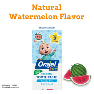 Pasta de dente Orajel Kids CocoMelon Training sem flúor; #1 Creme dental sem flúor recomendada pelo pediatra*, tubo de 1,5 onças – LIMPA DENTES E GENGIVAS DE FORMA SUAVE E EFICAZ: A pasta de dente de treinamento Orajel ajuda a remover alimentos e placa bacteriana escovando os dentes para limpar os dentes. – PASTA DE DENTE DE TREINAMENTO SEM FLÚOR: Nossa fórmula sem flúor é segura se ingerida quando usada conforme as instruções. – SABOR NATURAL DE MELANCIA: Um ótimo sabor ajuda a estimular a escovação. As crianças adoram o sabor! – INGREDIENTES 100% DE ORIGEM NATURAL: Livre de parabenos, açúcar, glúten, silicones, álcool, laurilsulfato de sódio (SLS), laticínios, aspartame e conservantes artificiais, corantes, corantes e adoçantes – COCOMELON: Torne divertido aprender hábitos de escovação saudáveis com o creme dental Orajel! Deixe JJ participar da rotina diária de seus filhos!