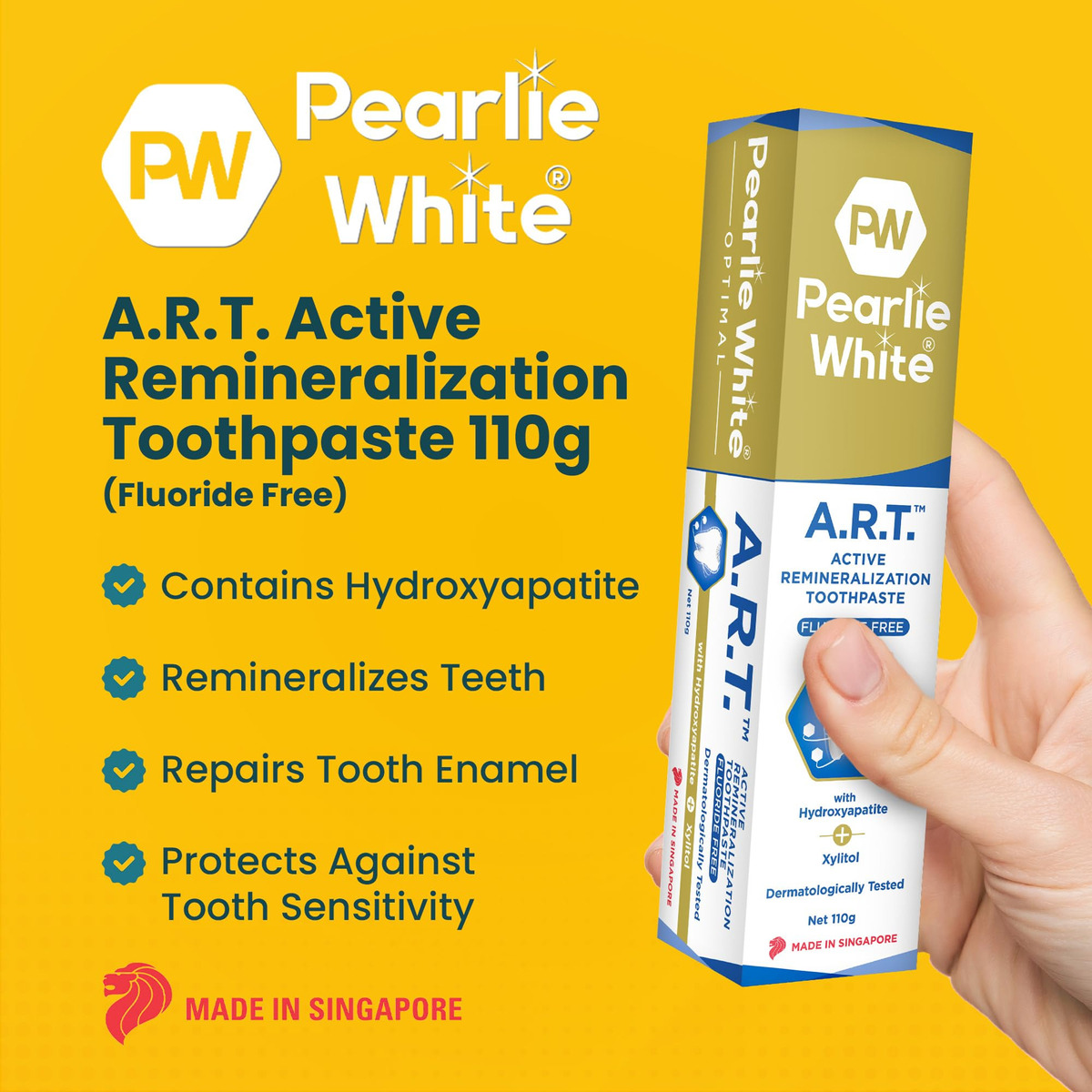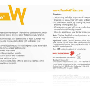 O creme dental de remineralização ativa Pearlie Whites restaura o esmalte desmineralizado, apresentando uma fórmula exclusiva com hidroxiapatita e xilitol. Suave e sem flúor, evita produtos químicos agressivos como parabenos, dióxido de titânio e peróxido. Esta solução inovadora de higiene bucal combate a placa bacteriana e o mau hálito com antioxidantes, camomila, vitamina E, carbonato de cálcio e aloe vera. Orgulhosamente uma marca de Cingapura, promovemos a saúde bucal global patrocinando mais de 100.000 escovas e cremes dentais anualmente para comunidades carentes. – Repare dentes desmineralizados: o creme dental de remineralização ativa Pearlie Whites para dentes sensíveis ajuda a criar um sorriso saudável. Ele repara o esmalte dentário desmineralizado que está danificado devido aos ácidos que a placa produz, mas é seguro para você usar todos os dias. – Fórmula exclusiva: este creme dental contém hidroxiapatita que se liga e repara o esmalte dentário desmineralizado. Ele também contém xilitol que aumenta o nível de pH da saliva e trabalha com os minerais naturais a serem depositados no esmalte desmineralizado. – Sem flúor e suave: composto pelos melhores ingredientes sem origem animal ou produtos químicos agressivos, como parabenos, dióxido de titânio e peróxido, então é melhor para você. Não espuma tanto, pois não contém laurilsulfato de sódio que seca a boca. – Cuidado bucal inovador: lute contra a placa bacteriana e o mau hálito com nossa pasta de dente enriquecida com antioxidantes, camomila e vitamina E. Ela usa carbonato de cálcio para remover suavemente manchas e aloe vera para acalmar dentes e gengivas sensíveis. – Livre de crueldade e comprometida com a retribuição: nossos produtos premium e isentos de crueldade visam trazer milhas. Anualmente, doamos mais de 100.000 escovas e cremes dentais para comunidades carentes em todo o mundo, garantindo cuidados bucais essenciais para os necessitados.