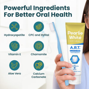 Pearlie White 3,8 onças, 110 g REPARA DENTES DESMINERALIZADOS com micropartículas de hidroxiapatita que se ligam e reparam o esmalte dentário desmineralizado. O XILITOL AUMENTA O NÍVEL DE PH DA SALIVA e estimula os minerais naturais da saliva a serem depositados no esmalte dentário desmineralizado. Creme dental sem flúor COMBATE a placa bacteriana e o mau hálito – REPARE DENTES DESMINERALIZADOS: Pearlie Whites Active Remineralization A pasta para dentes sensíveis ajuda a criar um sorriso saudável. Ele repara o esmalte dentário desmineralizado que está danificado devido aos ácidos que a placa produz, mas é seguro para uso diário. – FÓRMULA EXCLUSIVA: Este creme dental contém hidroxiapatita que se liga e repara o esmalte dentário desmineralizado. Ele também contém xilitol que aumenta o nível de pH da saliva e trabalha com os minerais naturais a serem depositados no esmalte desmineralizado. – SEM FLÚOR E SUAVE: Composto pelos melhores ingredientes sem origem animal ou produtos químicos agressivos, como parabenos, dióxido de titânio e peróxido, então é melhor para você. Não faz muita espuma, pois não contém laurilsulfato de sódio que seca a boca. – CUIDADO BUCAL INOVADOR: lute contra a placa bacteriana e o mau hálito com nosso creme dental enriquecido com antioxidantes, camomila e vitamina E. Ele usa carbonato de cálcio para remover manchas suavemente e aloe vera para acalmar dentes e gengivas sensíveis. – Uma MARCA DE CINGAPURA: Nossos produtos são feitos em Cingapura com ingredientes de qualidade e não são testados em animais. Para trazer sorrisos, patrocinamos anualmente mais de 100.000 escovas e cremes dentais para comunidades em todo o mundo onde a higiene bucal básica é um luxo.