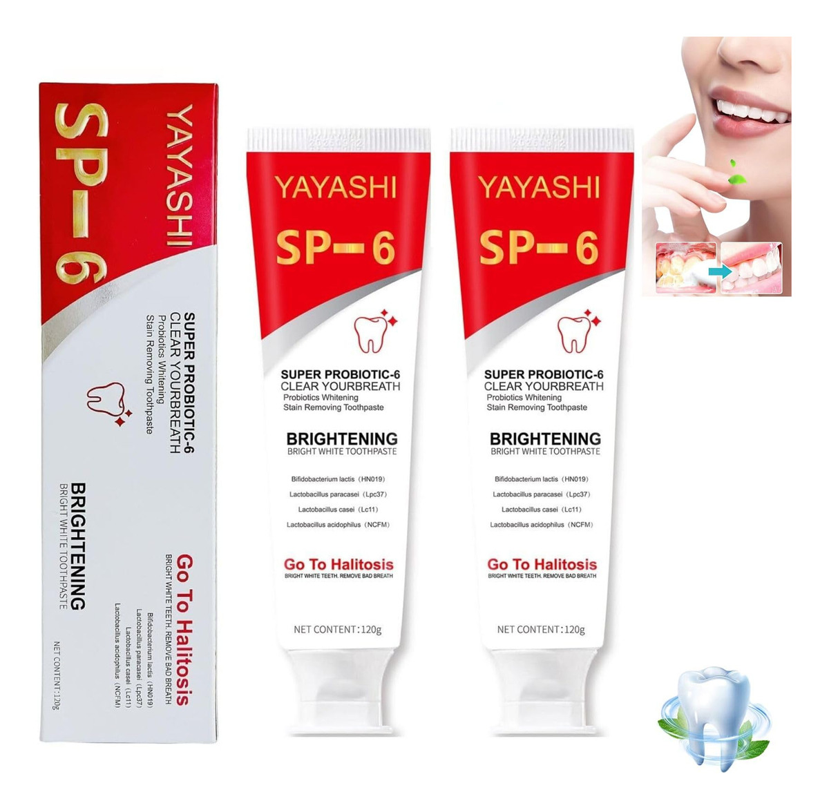 Pasta de dente Sp-6, pasta de dente Sp6, pasta de dente Sp 6 Como usar: duas vezes ao dia, use uma quantidade de pasta de dente do tamanho de uma ervilha para limpar completamente os dentes e gengivas, fornecendo proteção oral durante todo o dia – Pasta de dente SP-6: a pasta de dente melhora sua condição bucal, refresca eficazmente o hálito, garantindo proteção eficaz contra cáries – Limpeza profunda dos dentes: a pasta de dente Sp6 ajuda a limpar os dentes com eficácia, eliminando partículas de alimentos e manchas profundas embutidas eles. Elimina rapidamente anos de manchas causadas por café, chá e vinho – Fórmula suave: o creme dental Sp 6 feito com uma fórmula natural, fornece proteção total para suas gengivas e dentes e ajuda a manter o hálito refrescante – Instruções de uso: aplique na escova de dentes e limpe os dentes diretamente. Recomenda-se usar duas vezes ao dia, de manhã e à noite, por 2-3 minutos de cada vez; enxágue e cuspa com água limpa após o uso (sugere-se escovar a seco sem água) – Para a multidão: este creme dental probiótico sp-6 é adequado para familiares de todas as idades para uso diário