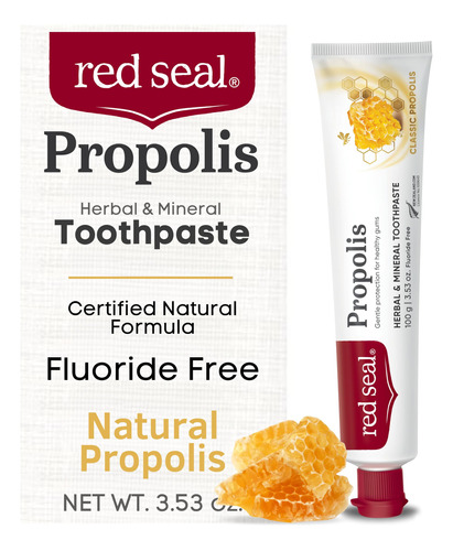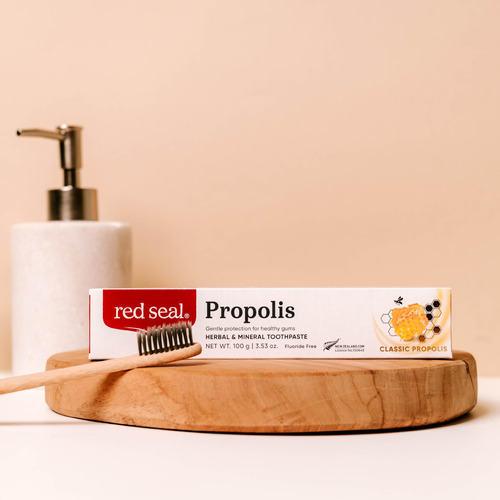 Cuidado delicado das gengivas para uma saúde bucal duradoura Desfrute do cuidado calmante de nosso creme dental mineral e herbal Red Seal Propolis, meticulosamente elaborado para fornecer proteção suave às gengivas. Enriquecido com os benefícios naturais da própolis, este creme dental sem flúor foi projetado para promover gengivas saudáveis, garantindo uma base sólida para sua saúde bucal geral. Nosso creme dental contém própolis, uma resina natural produzida por abelhas conhecidas por suas propriedades antimicrobianas e anti-inflamatórias. Este poderoso ingrediente ajuda a fortalecer suas gengivas, fornecendo um escudo contra possíveis infecções. Experimente o efeito calmante da própolis, pois ela funciona em harmonia com as defesas do corpo, oferecendo uma camada de proteção que vai além dos cuidados bucais comuns. Diga adeus à sensibilidade – Diga adeus ao desconforto das gengivas sensíveis. O creme dental Red Seal Propolis é formulado especificamente para aliviar a sensibilidade, deixando você com uma sensação refrescante após cada uso. Desfrute da confiança que vem com um sorriso radiante e gengivas que parecem cuidadas e resilientes. Pureza natural: uma pasta de dente sem aditivos sintéticos Escolha uma pasta de dente sem sls que cuide da sua saúde bucal e, ao mesmo tempo, esteja atento ao que contém. O creme dental Red Seal Propolis Herbal & Mineral é uma celebração da pureza, sem cores sintéticas, sabores artificiais e aditivos nocivos. Mergulhe em uma experiência de creme dental sem flúor, tão limpa e natural quanto seu sorriso. – Proteção suave da gengiva: adote o cuidado calmante da pasta de dente de própolis Red Seal, projetada para fornecer proteção suave às gengivas, promovendo sua saúde e vitalidade. – Sem flúor: escolha uma abordagem holística para a saúde bucal com nossa fórmula de creme dental sem flúor. O creme dental Red Seal garante eficácia sem comprometer sua preferência por cuidados bucais sem flúor. – Sem parabenos e sem crueldade: fique tranquilo sabendo que nosso creme dental não é apenas livre de parabenos, mas também livre de crueldade, alinhando-se ao nosso compromisso com a higiene bucal ética e responsável. – Natural certificado pela NATRUE: mergulhe na autenticidade da natureza com o creme dental natural certificado pela NATRUE, uma marca de garantia de que você está usando um produto feito com ingredientes naturais puros. – Herbal Freshness: Experimente uma explosão de frescor revigorante com nosso fórmula única, elaborada a partir de extratos de ervas e minerais, garantindo uma sensação natural e revitalizante com cada pincel.