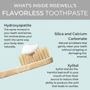 O creme dental totalmente natural sem sabor RiseWells é ideal para pessoas sensíveis aos paladares e que procuram um clareamento natural dos dentes. Livre de adoçantes artificiais, óleos essenciais e sabores, oferece uma limpeza suave e eficaz sem sabor. Este creme dental insípido é perfeito para dentes sensíveis, reduz a sensibilidade e remineraliza eficazmente o esmalte para um sorriso mais saudável e brilhante. Este creme dental limpo é feito com ingredientes 100% limpos e seguros. Nosso creme dental clareador de dentes sensíveis não contém substâncias químicas nocivas, como SLS, propilenoglicol, sabores artificiais ou corantes – garante um cuidado diário seguro! Feito com orgulho nos EUA, o creme dental sem sabor RiseWells para adultos é isento de glúten, vegano e livre de crueldade, combinando cuidados eficazes com padrões éticos. Para obter resultados brilhantes, escove com movimentos circulares suaves por 2 minutos, três vezes ao dia. Para obter os melhores resultados, recomendamos nossa rotina simples de higiene bucal de 3 etapas: usar fio dental, enxaguar e escovar (sem cuspir). Consiga um sorriso brilhante e saudável com nosso creme dental Made by Dentist! – INGREDIENTES NATURAIS, SEM ADIÇÃO DE SABOR: Creme dental sem sabor para pessoas sensíveis ao paladar! Nosso creme dental mineral sem sabor limpa suavemente sem adoçantes artificiais, óleos essenciais ou sabores. Este creme dental para dentes sensíveis é ideal para quem deseja uma experiência de escovação neutra e sem sabor. – REMINERALIZE E BRILHE COM CADA ESCOVA: Este creme dental limpo e sem sabor é alimentado por hidroxiapatita que fortalece o esmalte e restaura os minerais perdidos. Nosso creme dental clareador sensível embranquece suavemente sem abrasivos agressivos e reduz a sensibilidade ao mesmo tempo em que oferece uma remineralização eficaz. – ALÍVIO DE DENTES SENSÍVEIS: desfrute de cuidados delicados com nosso creme dental natural sem sabor! Nosso creme dental sem SLS com xilitol reduz a sensibilidade e fortalece o esmalte sem nenhum sabor. Este creme dental natural sensível oferece alívio efetivo com uma experiência limpa e neutra. – 100% LIMPO E SEGURO: Experimente a proteção poderosa de nosso creme dental sem sabor com ingredientes limpos e naturais nos quais você pode confiar. Livre de substâncias químicas nocivas como SLS, propilenoglicol, sabores artificiais, corantes ou Teflon. A fórmula desse creme dental sem sabor é ideal para dentes sensíveis, oferecendo um cuidado seguro e eficaz para seu sorriso. – Feito nos EUA: o creme dental sem sabor RiseWell com xilitol e hidroxiapatita é orgulhosamente fabricado nos EUA. Nossos produtos de creme dental clareador natural são sem glúten, sem SLS, veganos e livres de crueldade, oferecendo uma opção limpa e ética para aqueles que se preocupam com o que acontece em sua rotina de saúde bucal.