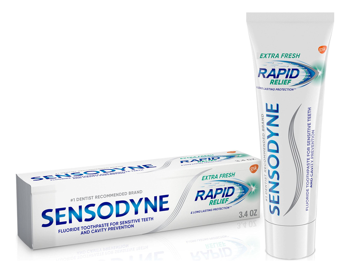 Creme dental sensível Sensodyne Rapid Relief, prevenção de cáries e tratamento de dentes sensíveis – 3,4 onças – Um tubo de 3,4 onças de creme dental sensível Sensodyne Rapid Relief extra fresco, prevenção de cáries e tratamento de dentes sensíveis – O creme dental Sensodyne Rapid Relief fornece alívio da sensibilidade em menos de três dias com a escovação duas vezes ao dia – Protege os dentes sensíveis criando uma camada protetora sobre a dentina exposta – Creme dental anticavity que limpa e ajuda com eficácia clarear dentes manchados – Creme dental sensível especialmente formulado para proteger seus dentes nervos causados pela exposição ao frio, calor, ácido, doces ou contato – Creme dental extra fresco para um hálito fresco – Escove por dois minutos, duas vezes ao dia