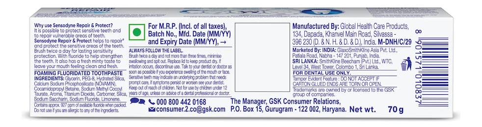 Pasta de dentes Sensodyne Repair Protect com flúor 70 mg – Pacote com 1 – Pasta de dentes Sensodyne para proteção diária dos dentes contra a sensibilidade – A pasta de dentes Sensodyne Repair and Protect ajuda a reparar áreas sensíveis dos dentes