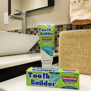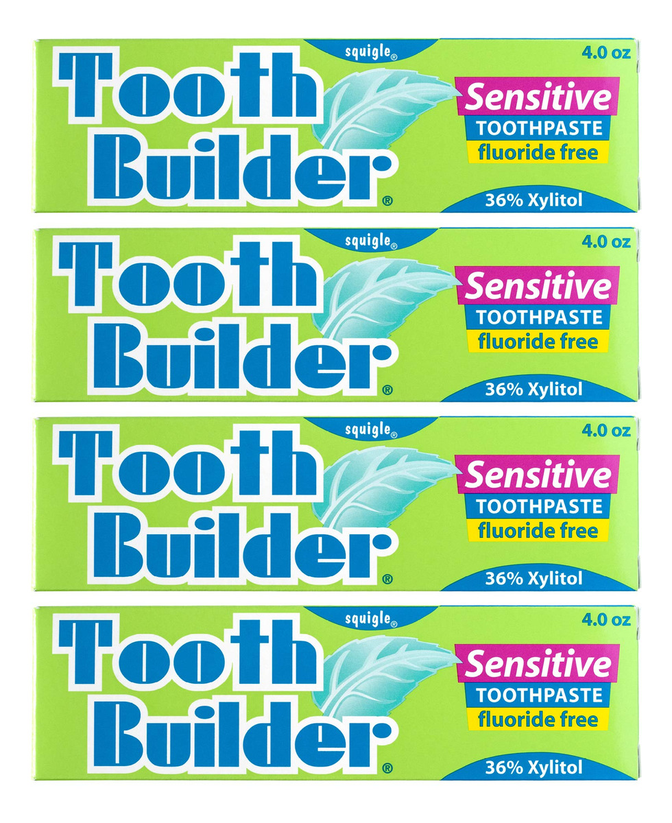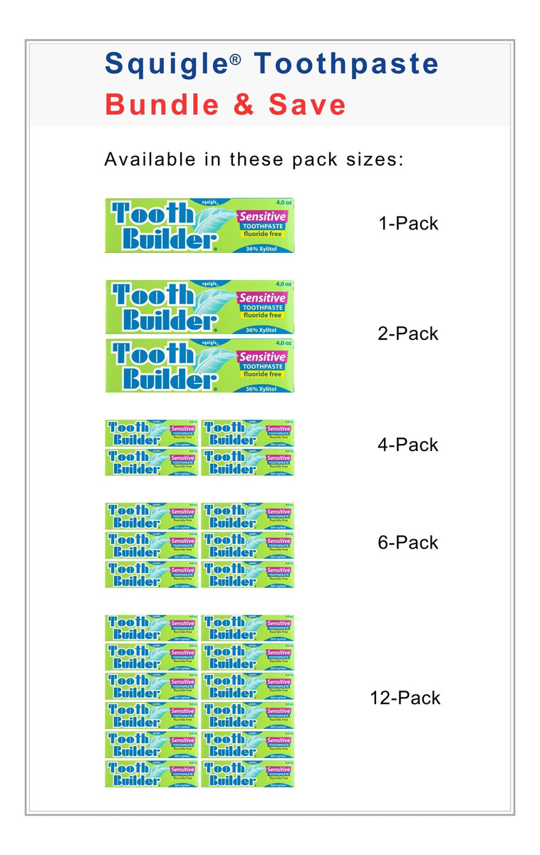 O creme dental sem SLS Squigle Tooth Builder (interrompe a sensibilidade dentária) previne aftas, cáries, dermatite perioral, mau hálito e lábios rachados – Pacote com 4 – Contém 36% de xilitol – Inibe profundamente a placa – Sem flúor e sem SLS (laurilsulfato de sódio) – Calcita nanométrica – Sela a dentina exposta, substitui o cálcio perdido e neutraliza os ácidos – Dente sem sabor Pasta – Feita nos EUA