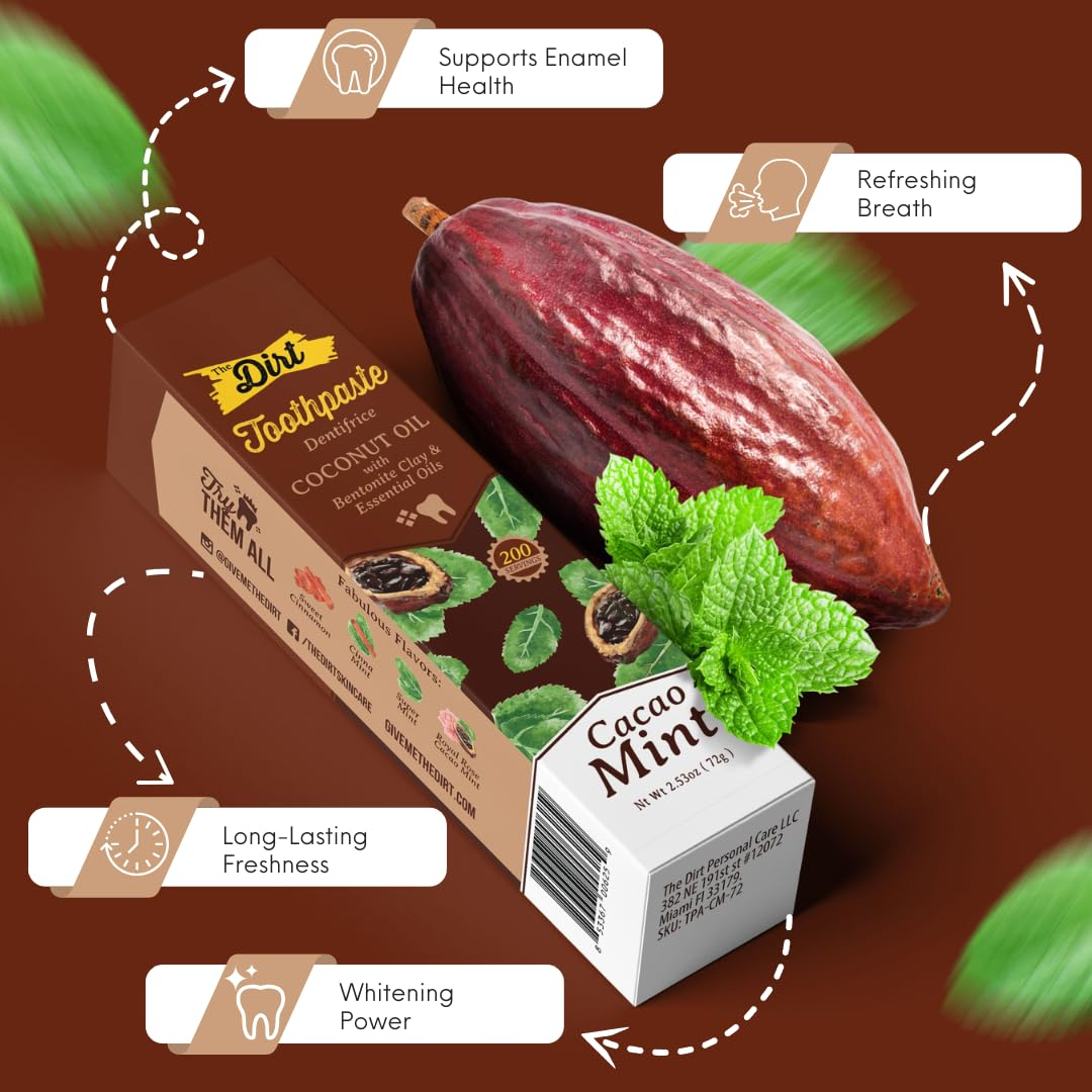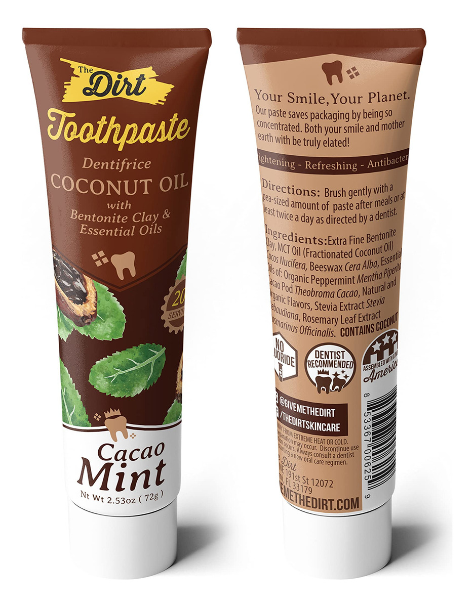 Apresentando o creme dental com óleo de coco THE DIRT no delicioso sabor de cacau e menta, sua solução definitiva para um sorriso naturalmente radiante e saudável. Feito com cuidado, nosso creme dental premium é repleto de ingredientes orgânicos e óleos essenciais, garantindo uma experiência única de higiene bucal que deixará sua boca revigorada e rejuvenescida. Descubra o poder da natureza e adote uma abordagem holística à higiene dental com o creme dental com óleo de coco THE DIRT. Junte-se a milhares de clientes satisfeitos que escolheram THE DIRT para suas necessidades naturais de higiene bucal. Nosso compromisso com a qualidade e a satisfação do cliente nos tornou uma marca confiável no setor. Descubra os benefícios de nosso creme dental com óleo de coco hoje e desfrute de um sorriso mais saudável e confiante. – ÓLEO DE COCO ORGÂNICO: Nosso creme dental aproveita as propriedades de limpeza e nutrição do óleo de coco orgânico, conhecido por sua capacidade de ajudar a manter gengivas saudáveis e combater o mau hálito. O creme dental com óleo de coco Dirts limpa uma camada lisa que protege as gengivas, repele o mau hálito e clareia os dentes. – SABOR DE MENTA DE CACAU: Experimente a sensação revigorante da menta de cacau ao escovar. Nosso creme dental combina a riqueza do cacau com o frescor da menta para uma rotina de higiene bucal refrescante e deliciosa. – INGREDIENTES NATURAIS: Nosso creme dental totalmente natural combina as propriedades antibacterianas do óleo MCT (óleo de coco fracionado) com os benefícios naturalmente desintoxicantes e de limpeza da argila bentonítica, que é firme o suficiente para remover a placa bacteriana dos dentes, mas macia o suficiente para não danificar o esmalte. – APRIMORADA ENCERRAMENTO: Diga adeus às manchas superficiais e olá a um sorriso mais brilhante. O creme dental com óleo de coco DIRT clareia suavemente os dentes ao longo do tempo, revelando uma pessoa naturalmente radiante e confiante. – CUIDADO BUCAL HOLÍSTICO: adote uma abordagem natural e holística da higiene dental. Nosso creme dental promove a saúde bucal geral, ajudando a prevenir cáries, reduzir o acúmulo de placa bacteriana e manter a sensação de frescor na boca.