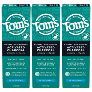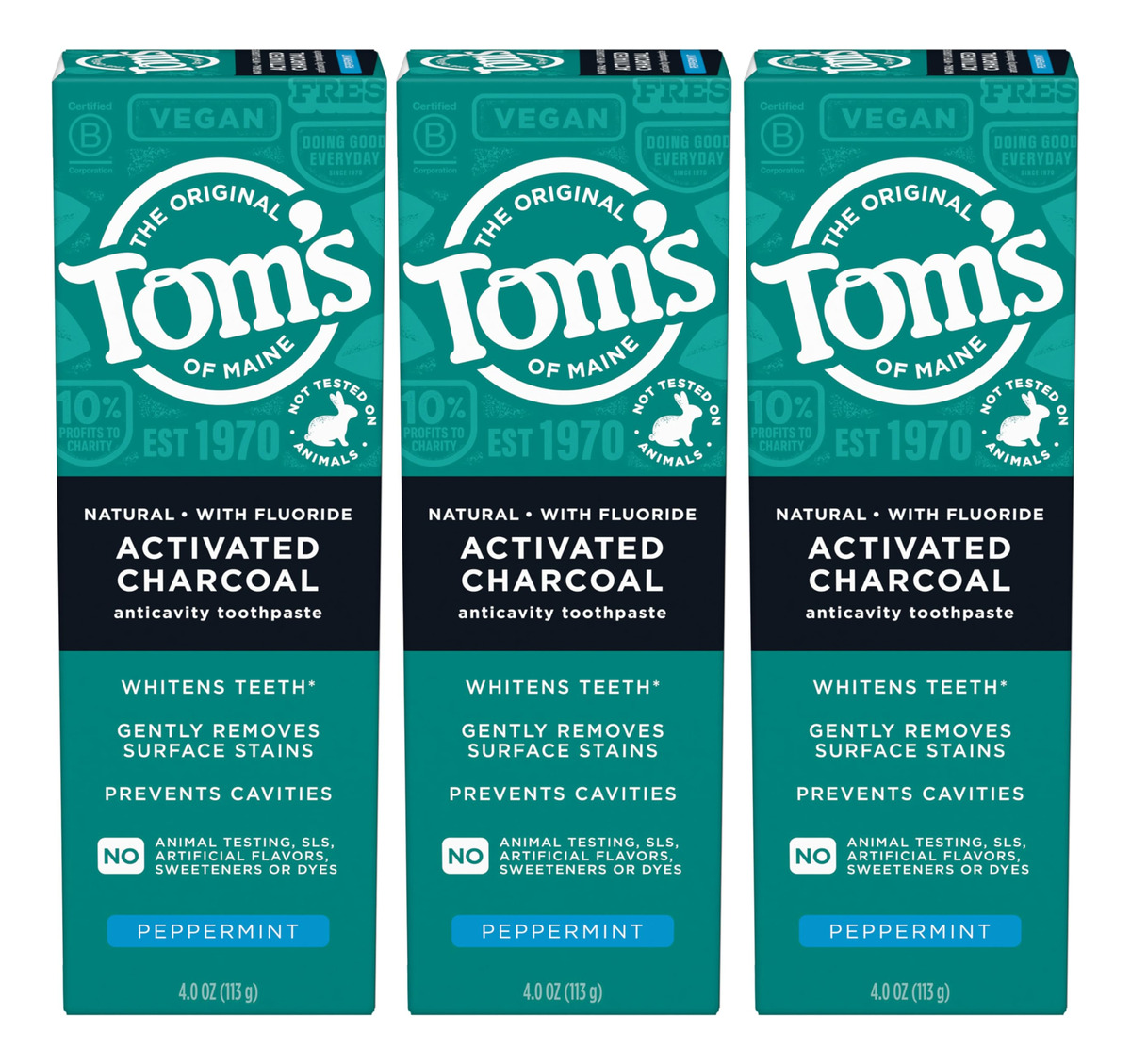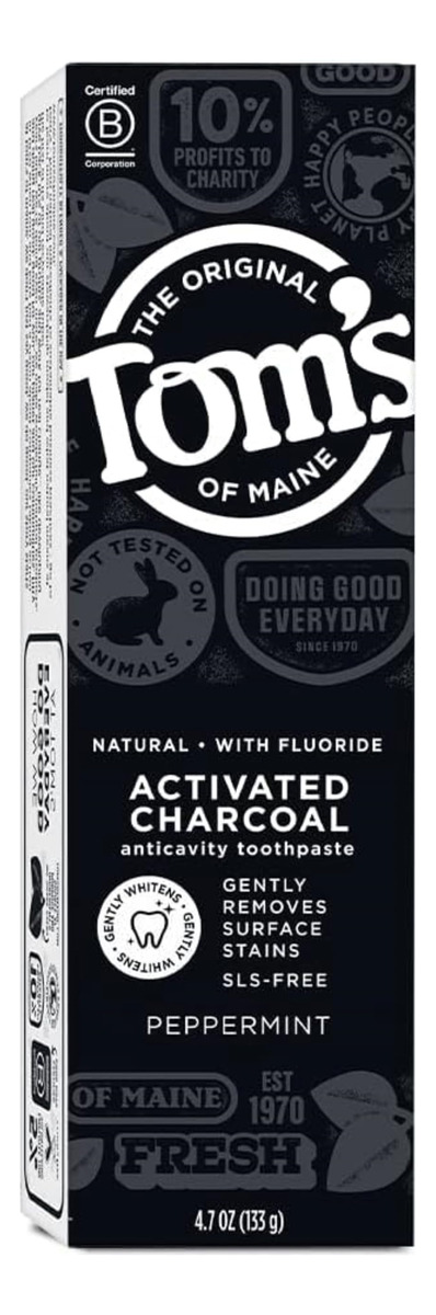 Pasta de dente branqueadora de carvão ativado Tom's of Maine com flúor e hortelã, 4,7 onças. Pacote com 3 (a embalagem pode variar) — O QUE VOCÊ RECEBERÁ: Três tubos de 4,7 onças de pasta de dente de carvão ativado Tom's of Maine no sabor de hortelã — ILUMINE SUAVEMENTE O SORRISO: pasta de dente branqueadora com carvão vegetal projetada para remover suavemente as manchas superficiais — COMBATE AS CÁRIES: a pasta de dente com flúor protege contra cáries e refresca a pimenta a hortelã refresca o hálito — TUBO RECICLÁVEL: procure a bandeira azul de reciclagem, esprema o máximo de pasta de dente que puder, recoloque a tampa e recicle — CUIDE BEM VOCÊ MESMO NATURALMENTE: Não contém conservantes, cores ou sabores artificiais e não é testado em animais