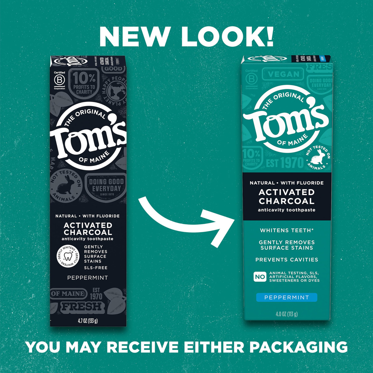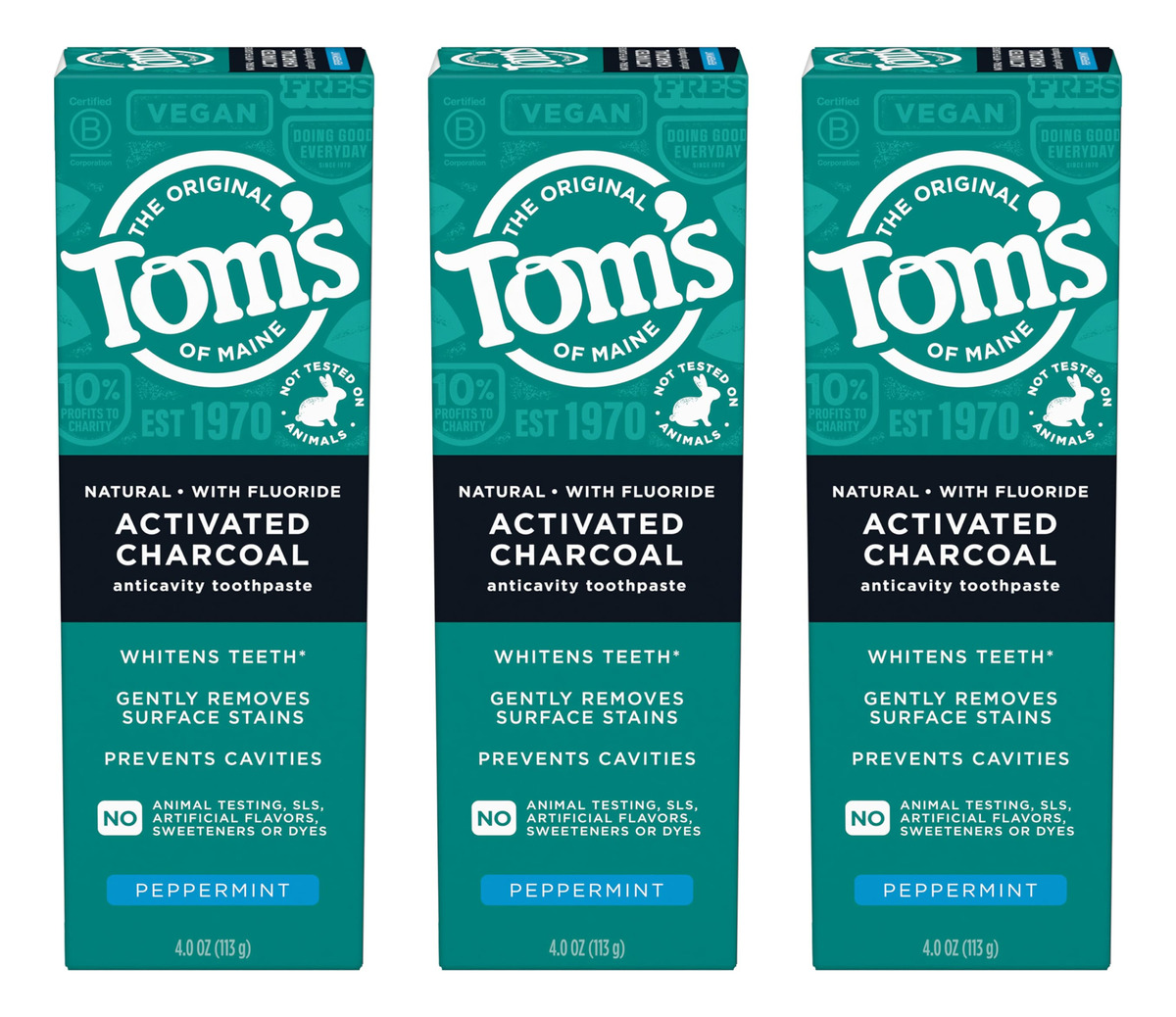 Pasta de dente natural de carvão ativado Toms of Maine com flúor, hortelã, 4,0 onças (pacote com 3) – Inclui três (3) tubos de 4,0 onças de creme dental natural de carvão ativado Toms of Maine com flúor e creme dental com flúor – A pasta de dente branqueadora natural com carvão branqueia suavemente os dentes removendo manchas superficiais – O sabor refrescante de hortelã ajuda a refrescar o hálito toda vez que você escova com esta pasta de dente – Feito com ingredientes de origem natural e derivados, o creme dental Anticavity é feito com flúor e ajuda a remover manchas superficiais com escovação regular até ajudar a branquear suavemente os dentes