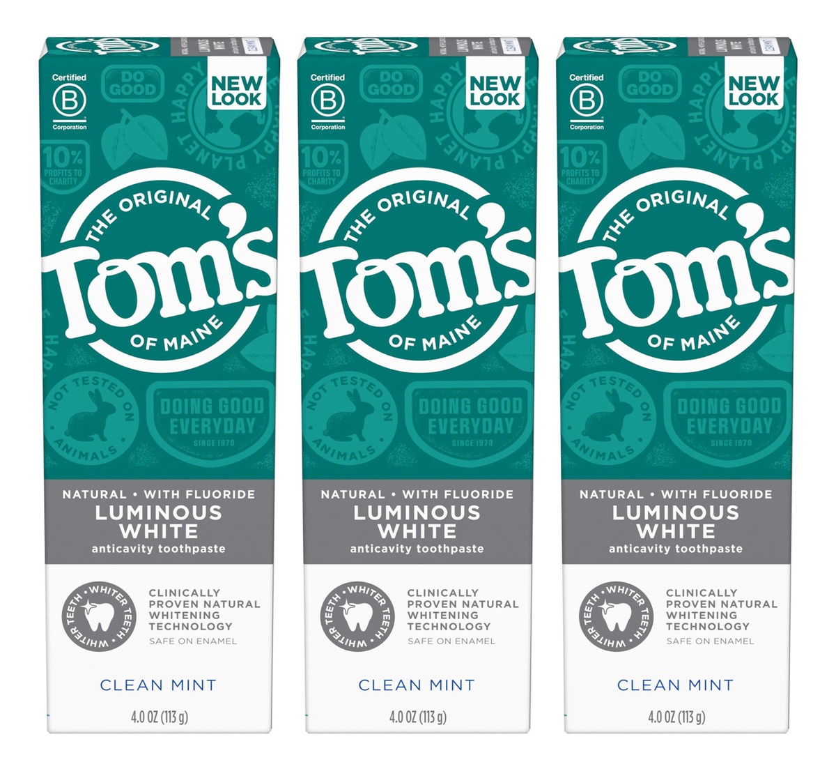 Pasta de dente branca luminosa natural Tom's of Maine com flúor, hortelã limpa, 4,0 onças. Pacote com 3 — O que você receberá: três tubos de pasta de dente natural branca luminosa Tom's of Maine em sabor de menta limpa — SORRISO MAIS BRANCO E BRILHANTE: Está clinicamente comprovado que esta pasta de dente clareadora clareia os dentes removendo manchas superficiais – PROTEÇÃO DA CAVIDADE: a pasta de dente com flúor evita cáries e fortalece o esmalte – RECICLÁVEL TUBO: Procure a bandeira azul de reciclagem, esprema o máximo de pasta de dente possível, recoloque a tampa e recicle – CUIDE-SE NATURALMENTE: Não contém conservantes, cores ou sabores artificiais e não é testado em animais
