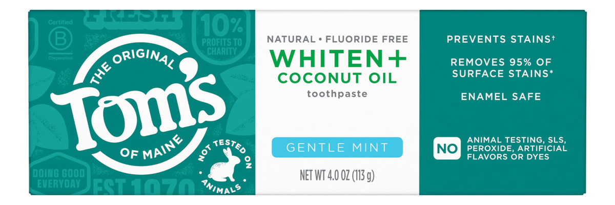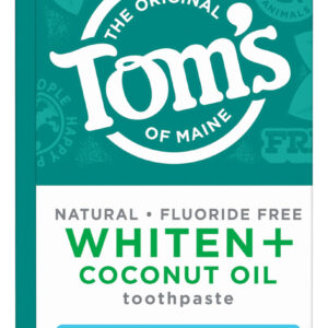 Creme dental sem flúor de óleo de coco Toms of Maine Whiten Plus, creme dental clareador natural com óleo de coco e produtos de limpeza à base de plantas, clareia sem causar sensibilidade, hortelã suave, 4,0 onças – O QUE HÁ DENTRO: Inclui um (1) tubo de 4,0 onças de creme dental Toms of Maine Whiten Plus sem flúor de óleo de coco, hortelã suave – remove manchas: após 2 semanas de uso duas vezes ao dia, este creme dental clareador remove até 95% de manchas superficiais para ajudar a obter um sorriso mais branco e brilhante — CREME DENTAL BRANQUEADOR ESMALTADO: este creme dental branqueador natural clareia os dentes com segurança sem causando sensibilidade – CLAREAMENTO CLINICAMENTE COMPROVADO: branqueia os dentes usando produtos de limpeza à base de plantas e micropolidores de origem natural que removem e evitam novas manchas – CUIDADO BUCAL NATURAL: O óleo de coco Toms of Maine Whiten Plus não é testado em animais e é feito sem peróxido, sabores artificiais, SLS ou corantes