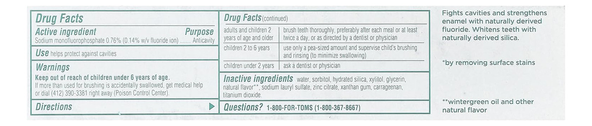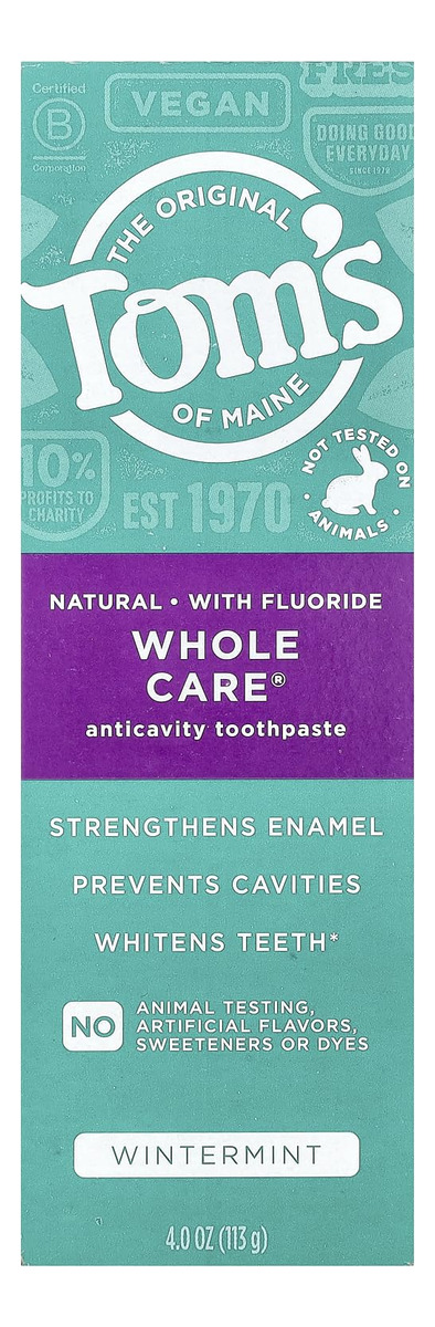 Pasta de dente natural Tom's of Maine Whole Care com flúor, hortelã, 4 onças (a embalagem pode variar) – O que você receberá: um tubo de 4 onças de creme dental Tom's of Maine Whole Care com sabor de hortelã – PROTEÇÃO DA CAVIDADE: combate as cáries enquanto refresca o hálito e evita o acúmulo de tártaro – PASTA DE DENTE BRANQUEADORA: sílicas de origem natural ajudam a remover manchas superficiais para um sorriso mais brilhante – FORTALECE OS DENTES: Tom's O creme dental com flúor do Maine promove a remineralização para fortalecer o esmalte – NATURAL E RESPONSÁVEL: não contém adoçantes, conservantes e corantes artificiais ou sabores e não é testado em animais