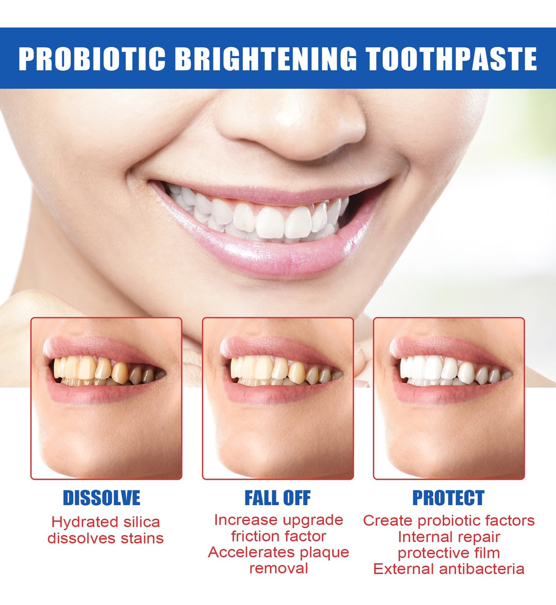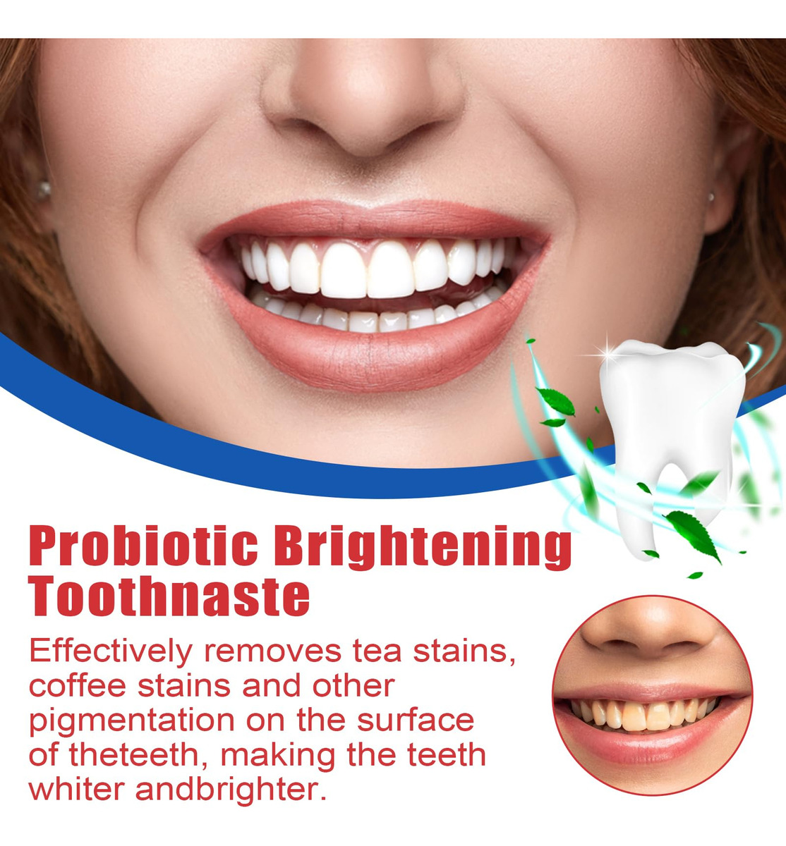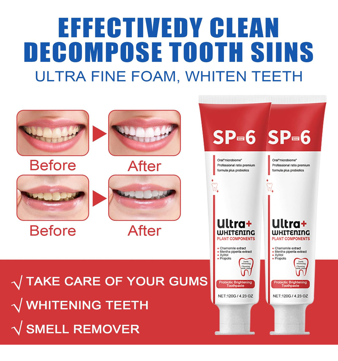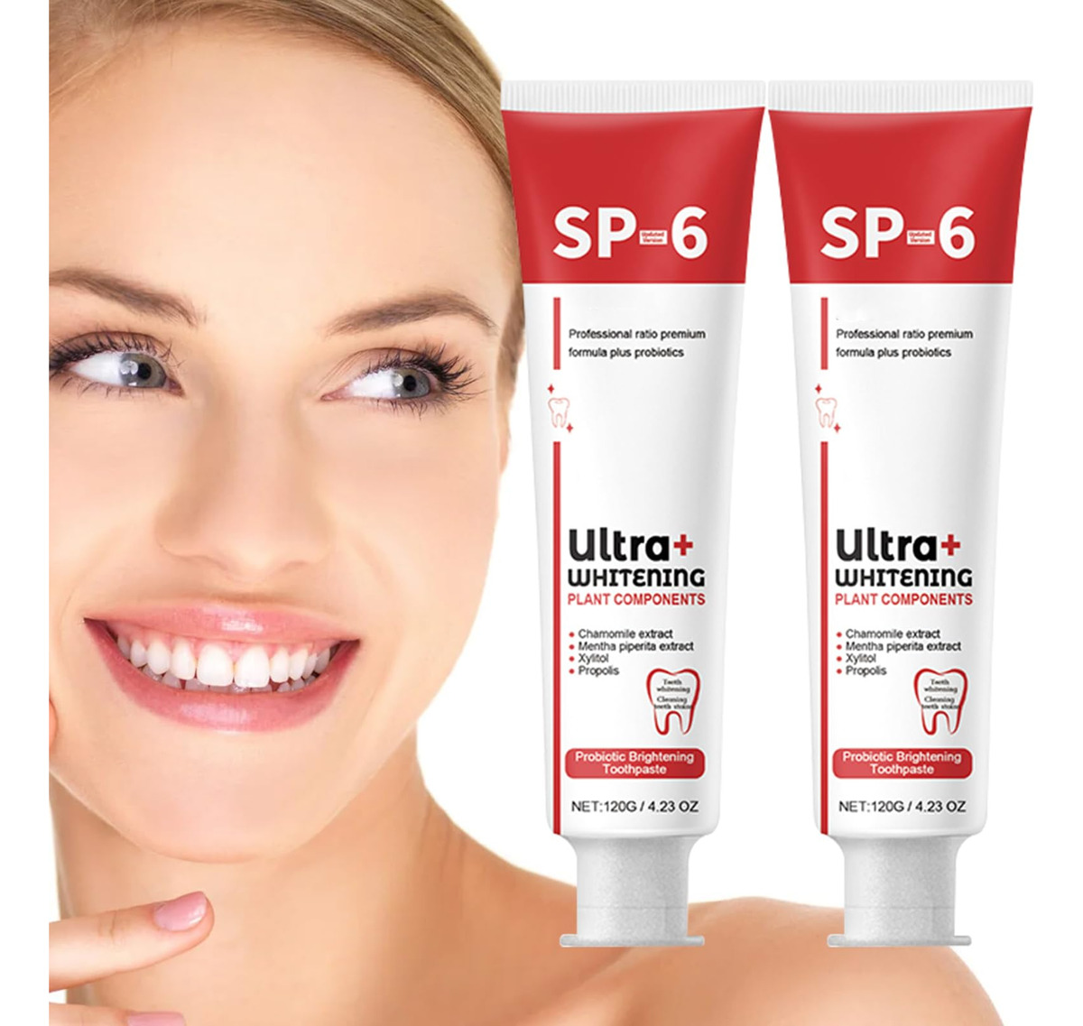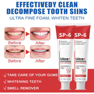Sp-6 Ultra Whitening – [Creme dental com probióticos Sp-6] O uso regular de nosso creme dental clareador sp-6 remove de forma eficaz e rápida as manchas causadas por café, chá e vinho, deixando você com dentes visivelmente mais brancos e um sorriso mais branco. Lista de embalagens: 2* Creme dental. – [Creme dental branqueador probiótico Sp-6] Nosso creme dental clareador usa ingredientes naturais e suaves que são seguros para o uso diário e melhoram a saúde bucal geral. Encha toda a boca com um sabor refrescante, enquanto os probióticos aumentam ainda mais sua saúde bucal. – [Hálito fresco] Desfrute de um hálito fresco o dia todo com nosso creme dental branqueador de dentes sp-6. Ele pode não apenas eliminar o mau hálito, prevenir eficazmente a cárie dentária, manter o hálito fresco por muito tempo e tornar seu sorriso mais confiante. – Frescura de longa duração Nosso creme dental clareador sp-6 mantém seu hálito fresco o dia todo, ajudando a melhorar seu humor e confiança. Você pode passar o dia com confiança sabendo que seu sorriso é fresco e brilhante – [Fácil de usar] Nosso creme dental para remover manchas é fácil de usar. Basta escovar os dentes com ele por 3 minutos, duas vezes ao dia, para obter melhores resultados. Com o uso regular, você notará uma melhora notável na brancura dos dentes, permitindo que você exiba seu sorriso com confiança! Atualize sua rotina de higiene bucal com o creme dental probiótico sp-6 hoje e experimente a diferença que isso faz!