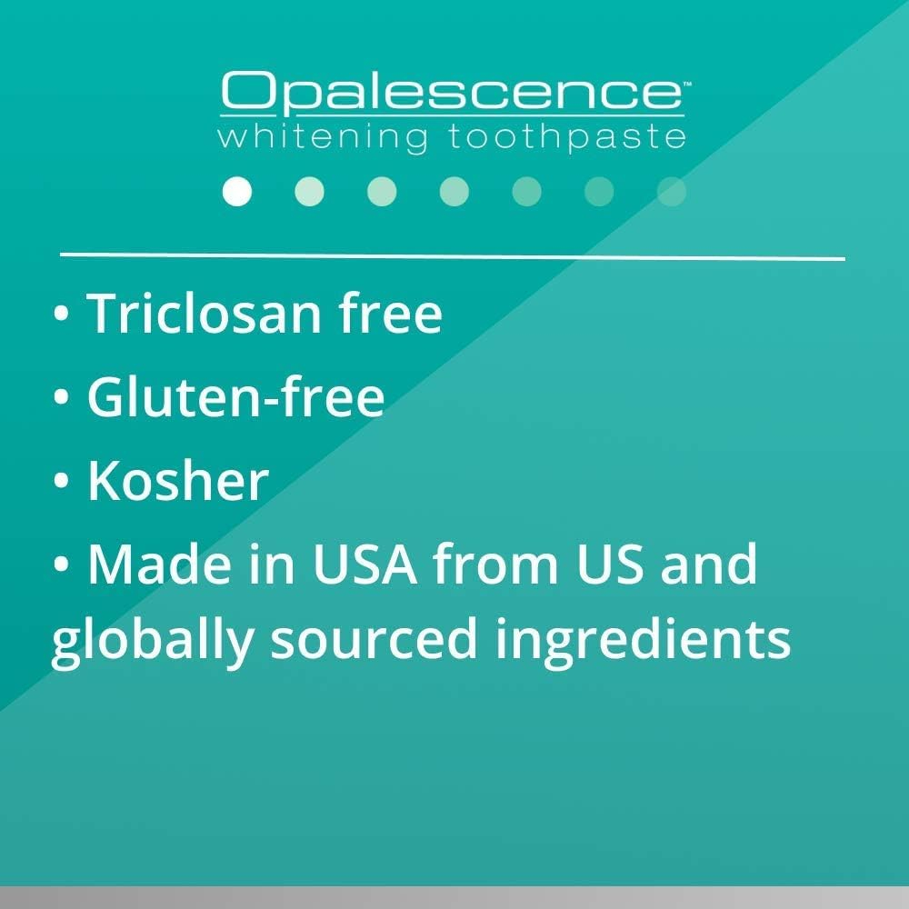 Você pode escolher entre as fórmulas Original ou Sensitivity Relief, disponíveis em tubos de 1,0 oz ou 4,7 oz, e desfrutar do sabor refrescante de Cool Mint. O creme dental branqueador Opalescence é enriquecido com fluoreto de sódio, oferecendo proteção cárie e benefícios de fortalecimento do esmalte. Além disso, inclui uma mistura exclusiva de sílica para combater ativamente as manchas superficiais, resultando em dentes visivelmente mais brancos. Com seu agente adoçante, o xilitol, pode até reduzir o risco de cárie dentária. Além disso, ambas as fórmulas são veganas e não contêm produtos de origem animal. Eles também são isentos de glúten e certificados como kosher, acomodando vários estilos de vida e crenças. Com um legado de mais de 30 anos de experiência, com mais de 50 prêmios de clareamento dental e iluminando mais de 100 milhões de sorrisos. O nome clareamento dental Opalescence é sinônimo de qualidade, e você pode confiar que nossos géis, bandejas de clareamento pré-preenchidas, seringas e creme dental são orgulhosamente fabricados nos EUA usando materiais de origem global. Escolha Opalescence e experimente a diferença por si mesmo. – Pasta de dente clareadora de dentes OPALESCENCE (pacote com 1) – Fórmula original Cool Mint – Higiene bucal, sem glúten – 1 onça feita pela Ultradent.- – SAÚDE ORAL DE LUXO E HÁLITO FRESCO: A fórmula de proteção com flúor inclui flúor para fortalecer os dentes e proteger contra cáries, garantindo que seu sorriso não seja apenas bonito, mas também saudável. Remove manchas superficiais para clarear os dentes em até 2 tonalidades em apenas 1 mês. – Suave, mas eficaz: menos abrasivo do que outros cremes dentais, tornando-o seguro para uso diário. Desfrute da confiança do hálito fresco com nosso sabor refrescante de menta, deixando sua boca limpa e revigorada. O clareamento dental Opalescence para adultos é isento de glúten e kosher. – QUALIDADE INCOMPARÁVEL: O Opalescence é fabricado nos EUA pela Ultradent Products Inc. A fórmula de clareamento dental Opalescence, confiável por dentistas em todo o mundo para um kit eficaz de clareamento dental. Com mais de 30 anos de experiência, mais de 50 prêmios de clareamento dental conquistados e mais de 100 milhões de sorrisos iluminados. – FÁCIL DE USAR: a fórmula Sensitivity Relief contém nitrato de potássio de força máxima para ajudar a aliviar a sensibilidade dentária. O creme dental branqueador de dentes opalescente contém flúor para ajudar a prevenir cáries e fortalecer o esmalte.