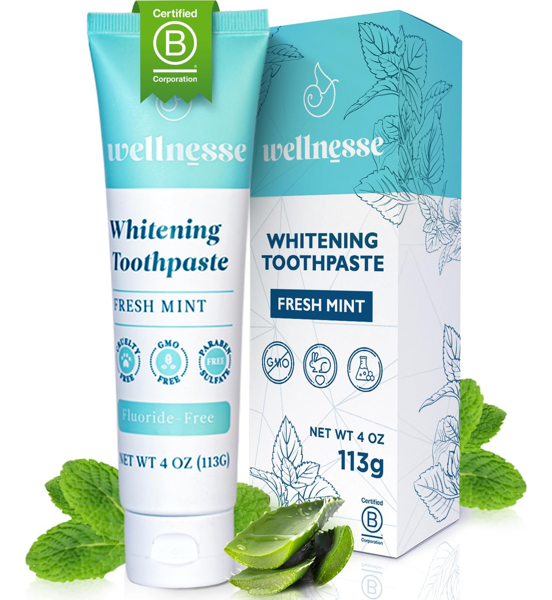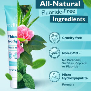 Da nossa família à sua Ingredientes cuidadosamente adquiridos, fórmulas limpas e naturais e uma sensação persistente de bem-estar. Nossos cuidados pessoais estão repletos de tudo o que você precisa e nada do que você não precisa. Mais sobre o que sorrir Finalmente, uma pasta de dente testada, testada e verdadeiramente natural. Nosso creme dental mineralizante depende de ingredientes naturais para limpar os dentes, acalmar as gengivas e refrescar o hálito. Creme dental totalmente natural para um sorriso mais brilhante, todos sorrisos, sem produtos químicos agressivos Em vez de flúor, nossa fórmula contém extrato de folha de chá verde, que é rico em antioxidantes. Além disso, é demonstrado que um fitoquímico do chá verde combate a sujeira e o acúmulo que causam danos aos dentes, enquanto os minerais naturais fortalecem os dentes e ajudam a prevenir cáries. Mencionamos que nossa pasta de dente contém zero glicerina? Refresque seu hálito É claro que o hálito fresco é fundamental para uma boa escovação dos dentes e, para isso, incluímos extrato de folha de hortelã e neem. O Neem evita que a sujeira grude nos dentes e se transforme em placa. Essa medida de proteção significa menos acúmulo, o que leva a… um hálito mais fresco! Dentes limpos e felizes Para obter força e brilho ideais, escove duas vezes ao dia para experimentar o sabor fresco de menta e dentes limpos e felizes! – Higiene bucal para um sorriso mais branco: nosso creme dental mineralizante depende de ingredientes naturais para limpar os dentes, acalmar as gengivas e refrescar o hálito. Nossa fórmula de clareamento dental contém hidroxiapatita, que fortalece os dentes e evita as cáries. – Solução de sensibilidade: aborde a sensibilidade dentária com nossa fórmula exclusiva. Com chá verde em pó e hidroxiapatita, nosso creme dental com xilitol fortalece os dentes, tornando-o a escolha ideal para quem sofre de dentes sensíveis que buscam alívio e reparação. – Frescor sem sobrecarga: experimente um hálito fresco sem a sensação avassaladora de menta. Combinando chá verde em pó, nosso creme dental garante um sabor sutil e agradável para uma experiência refrescante de higiene bucal. – Ingredientes puros e seguros: priorizando consumidores preocupados com a saúde, nosso creme dental é isento de flúor e glicerina. Feito com ingredientes seguros, ele se destaca como um creme dental de xilitol vegano e não irritante, evitando substâncias químicas nocivas. – Queremos que você seja feliz: adoramos nossos produtos e esperamos que você também os ame. Se você não estiver totalmente satisfeito com sua compra no Wellnesse, avise-nos para que possamos corrigi-la.