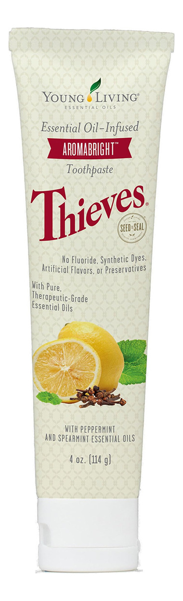 Experimente a limpeza refrescante do creme dental Young Living Thieves AromaBright, um creme dental premium sem flúor, infundido com óleos essenciais para aprimorar sua rotina diária de higiene bucal. Esta fórmula à base de plantas contém carbonato de cálcio e bicarbonato de sódio de origem natural, conhecidos por suas propriedades suaves de limpeza e polimento. Sem ingredientes sintéticos, sulfatos, SLS, corantes artificiais ou conservantes, esse creme dental oferece uma alternativa segura e eficaz para manter um sorriso saudável e radiante. Mistura refrescante de óleos essenciais infundida com óleos essenciais de hortelã e hortelã para proporcionar um sabor fresco e revigorante. Fórmula de limpeza suave elaborada com ingredientes vegetais para proporcionar uma sensação suave e polida. Fórmula com infusão de óleo de coco Projetada para uma limpeza suave e confortável como parte de sua rotina diária. Livre de flúor e adequado para toda a família, sem aditivos artificiais, o que o torna a escolha ideal para quem procura uma opção natural de higiene bucal. Melhore sua higiene bucal diária com o creme dental Thieves AromaBright, formulado para proporcionar um sorriso limpo e radiante com ingredientes naturais derivados de plantas. – Fórmula sem flúor feita com ingredientes de origem natural para uma limpeza suave e refrescante, apoiando sua rotina diária de higiene bucal sem aditivos agressivos. – Ação suave de polimento e limpeza Contém carbonato de cálcio e bicarbonato de sódio, que ajudam suavemente a remover manchas superficiais para um sorriso limpo e revigorado. – Óleos essenciais refrescantes infundidos com óleos essenciais de hortelã e hortelã para uma sabor naturalmente revigorante que deixa sua boca fresca e limpa durante todo o dia. – Textura suave e suave enriquecida com óleo de coco, conhecida por seu toque sedoso, tornando esta pasta de dente uma adição suave e refrescante ao seu regime de higiene bucal. – Livre de ingredientes agressivos feita sem flúor, sulfatos (SLS), cores, sabores ou conservantes artificiais, garantindo uma experiência de escovação pura e refrescante para toda a família.