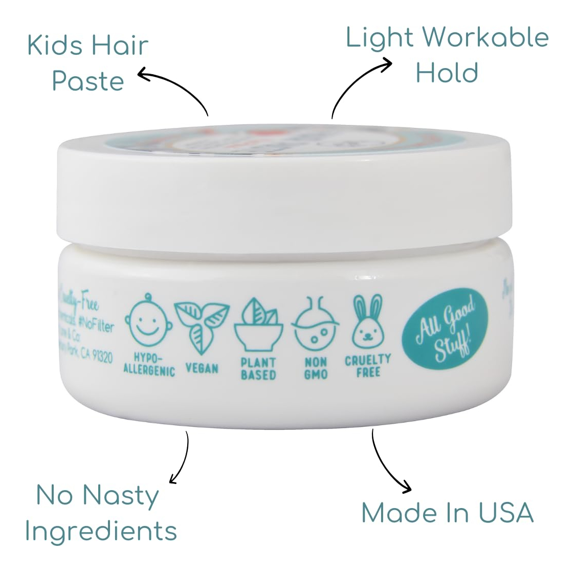 LANE & CO. Pasta de cabelo — Pasta modeladora à base de plantas para bebês, crianças pequenas e crianças — Fórmula natural e orgânica, segura e não pegajosa, doma a cabeceira da cama e o cabelo solto, 2 onças — Domina naturalmente os cabelos rebeldes — Nossa pasta para cabelo para bebês controla cabelos peludos, soltos e berços sem a ajuda de produtos químicos. É uma mistura de manteiga de karité orgânica, óleo de coco e manteiga de cacau. – Suave para maiores de 0 anos – Não é necessário comprar produtos de cabelo diferentes para a idade de seu bebê, criança pequena e crianças mais velhas. Nosso modelador de bálsamo para cabelo é tão suave e versátil que você pode usá-lo a partir de 0 anos – Um pouco vale muito – Com apenas uma pequena porção de nossa pasta de cabelo, o cabelo do seu filho pode ser torcido, enrolado ou alisado com uma fixação leve, mas flexível. Sem bagunça dura ou gordurosa! Nossa pasta de cabelo oferece uma fixação leve a média, dependendo do comprimento do cabelo – Estilo indispensável para crianças – Todos os pais devem levar uma banheira desse gel de cabelo para crianças em qualquer lugar. É um produto essencial para fotos improvisadas, soluções de emergência e eventos familiares formais. Finalmente, um gel de cabelo infantil que pode fazer tudo e pode ser usado em meninos e meninas – 100% seguro para crianças – Nosso gel para cabelo infantil é vegano, não transgênico, livre de crueldade, hipoalergênico e dermatologicamente testado. Não contém soja, glúten, nozes, laticínios, ftalatos, parabenos, corantes artificiais ou sulfatos. O gel para bebês Lane & Co não contém álcool. Nossos produtos para cabelo infantil são todos feitos nos EUA