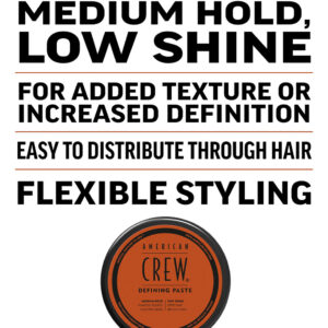 Pasta definidora de cabelo masculina American Crew (versão antiga), gel de cabelo de fixação média com baixo brilho, 3 onças (pacote com 1) – Pasta de cabelo: uma pasta de cabelo definidora que fornece uma aparência texturizada e doma o cabelo deixando um acabamento de baixo brilho. – Pasta de cabelo masculina: funciona bem quando se deseja uma definição de textura solta, cabelos sem crespos e uma aparência natural. – PRINCIPAL BENEFÍCIO: fixação média e baixo brilho. Domestiza o cabelo para uma aparência natural sem crespos. – COMO USAR: Passe uma pequena quantidade uniformemente nos cabelos secos ou secos com toalha e penteie conforme desejado. – QUEM SOMOS: A American Crew é líder nas categorias de cuidados masculinos para cabelo, corpo, barba, barba e estilo. O compromisso contínuo da American Crew é elevar o estilo masculino e aprimorar sua imagem pessoal.