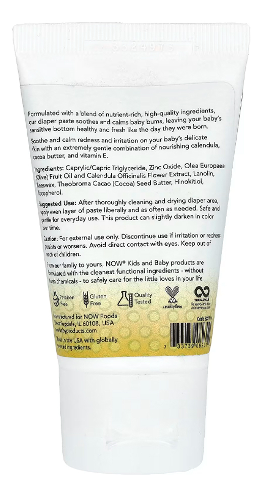 Esta pasta contém ingredientes cuidadosamente selecionados para proporcionar o máximo cuidado à pele do seu bebê. A fórmula de Now Foods é conhecida por seu rigor e compromisso com a segurança, garantindo um produto confiável e eficaz. Validade longa